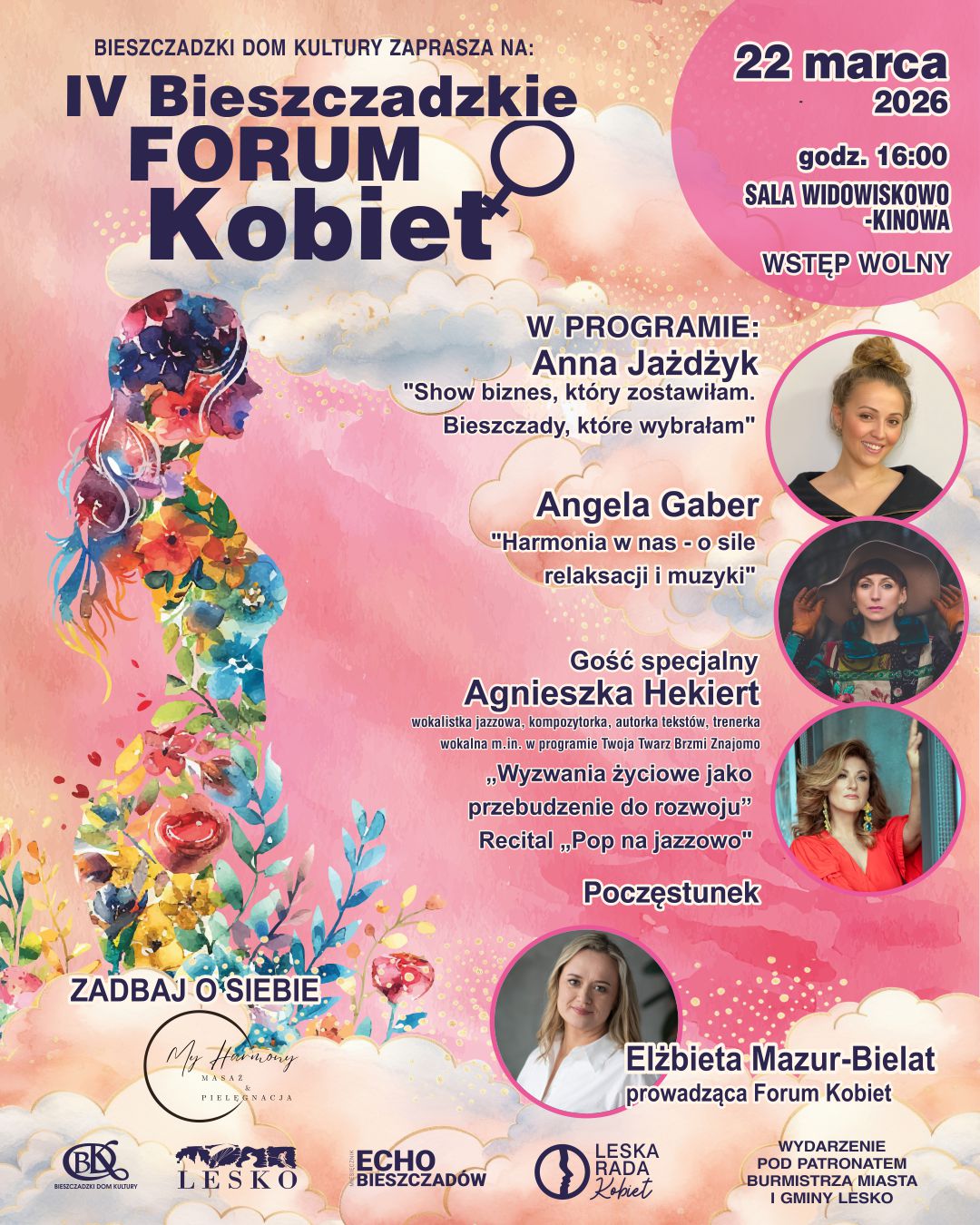 Bieszczadzki Dom Kultury serdecznie zaprasza na IV Bieszczadzkie Forum Kobiet – wyjątkowe spotkanie pełne inspiracji, rozmów i muzyki, skierowane do wszystkich kobiet, które chcą zadbać o siebie, rozwój i dobrą energię.