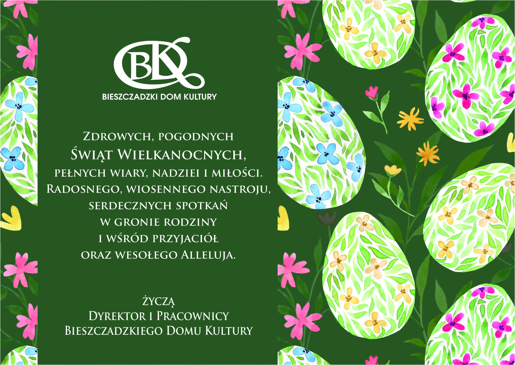 Z okazji Świąt Wielkanocnych Dyrektor BDK wraz z Pracownikami składają najserdeczniejsze życzenia: