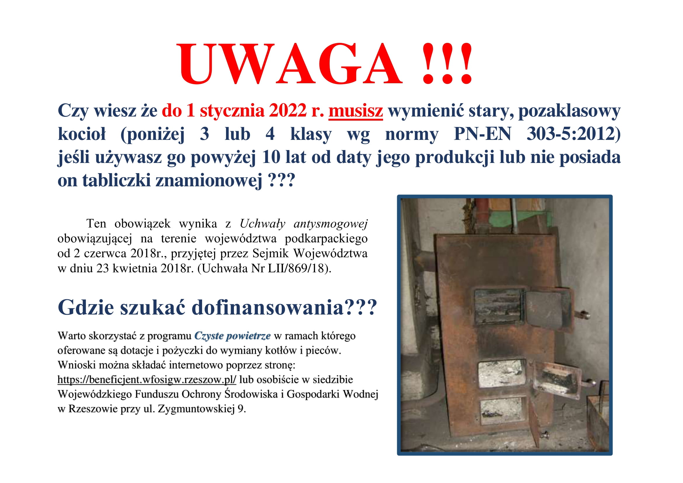 Uchwała wchodząc w życie wskazała jednocześnie terminy wymiany kotłów i pieców w Województwie Podkarpackim, które zostały zakupione przed 1 czerwca 2018r., i na dzień dzisiejszy nie spełniają standardów zgodnych z 5 klasą pod względem granicznych wartości emisji zanieczyszczeń.
