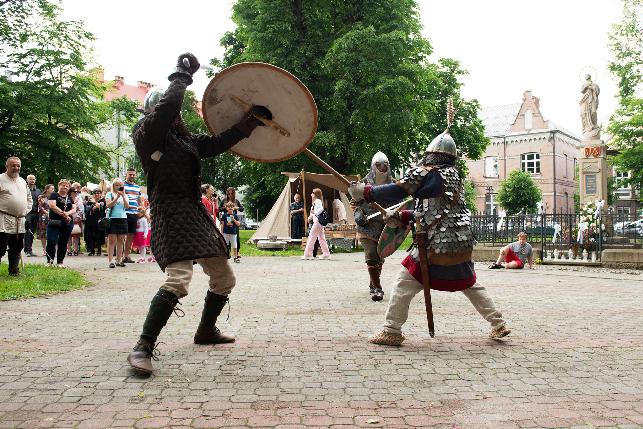 Prawdziwą furorę zrobiła grupa rekonstrukcyjna, której stylizowana wioska stanęła na leskich plantach. Przygotowała ona gry terenowe, walki wojów, opowieści o ich uzbrojeniu, ubiorach średniowiecza, wierzeniach i obchodzonych wówczas świętach. Dopełnieniem programu był pokaz tańca „menuet” i średniowiecznej mody szlacheckiej w wykonaniu mieszkańców gminy Lesko.