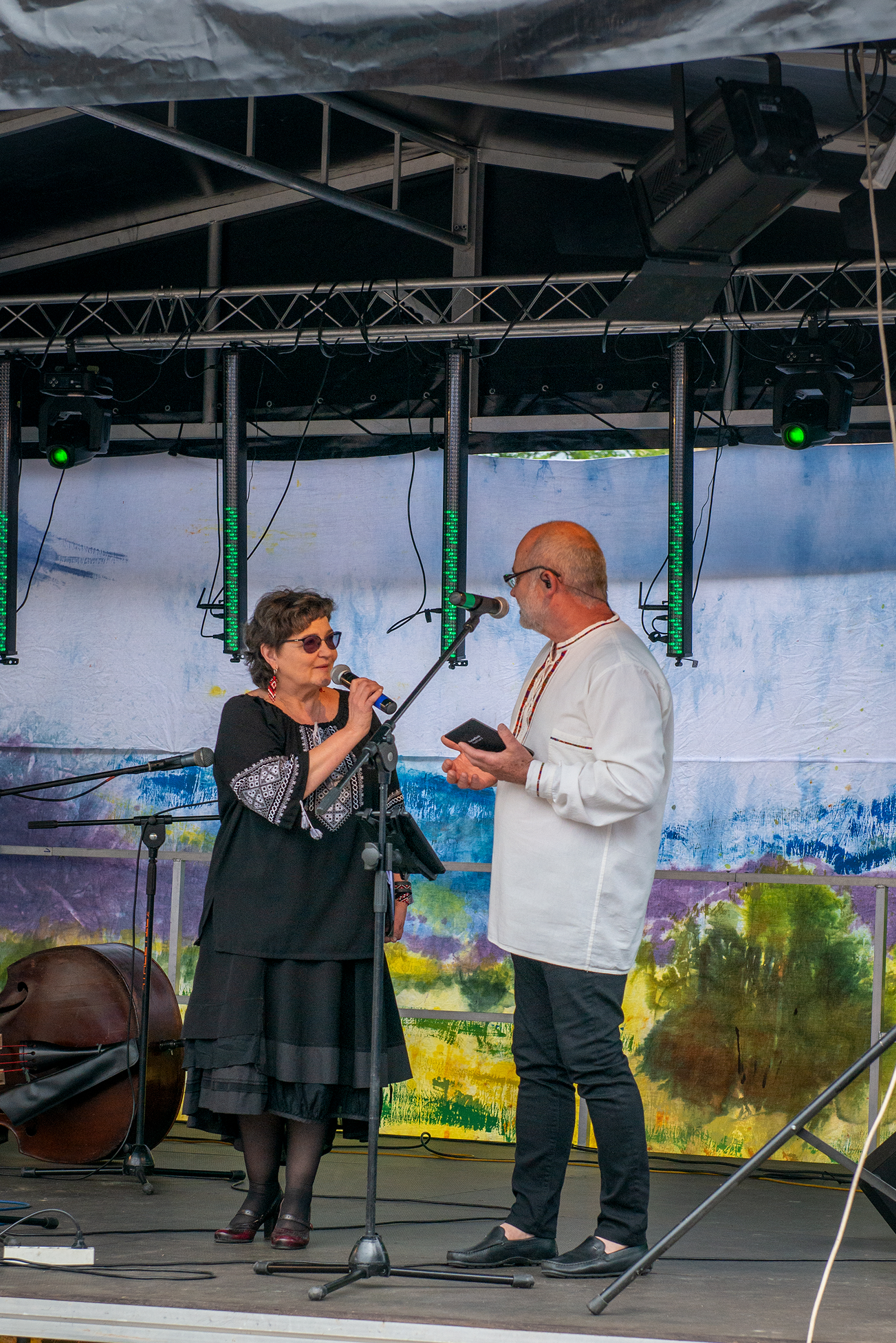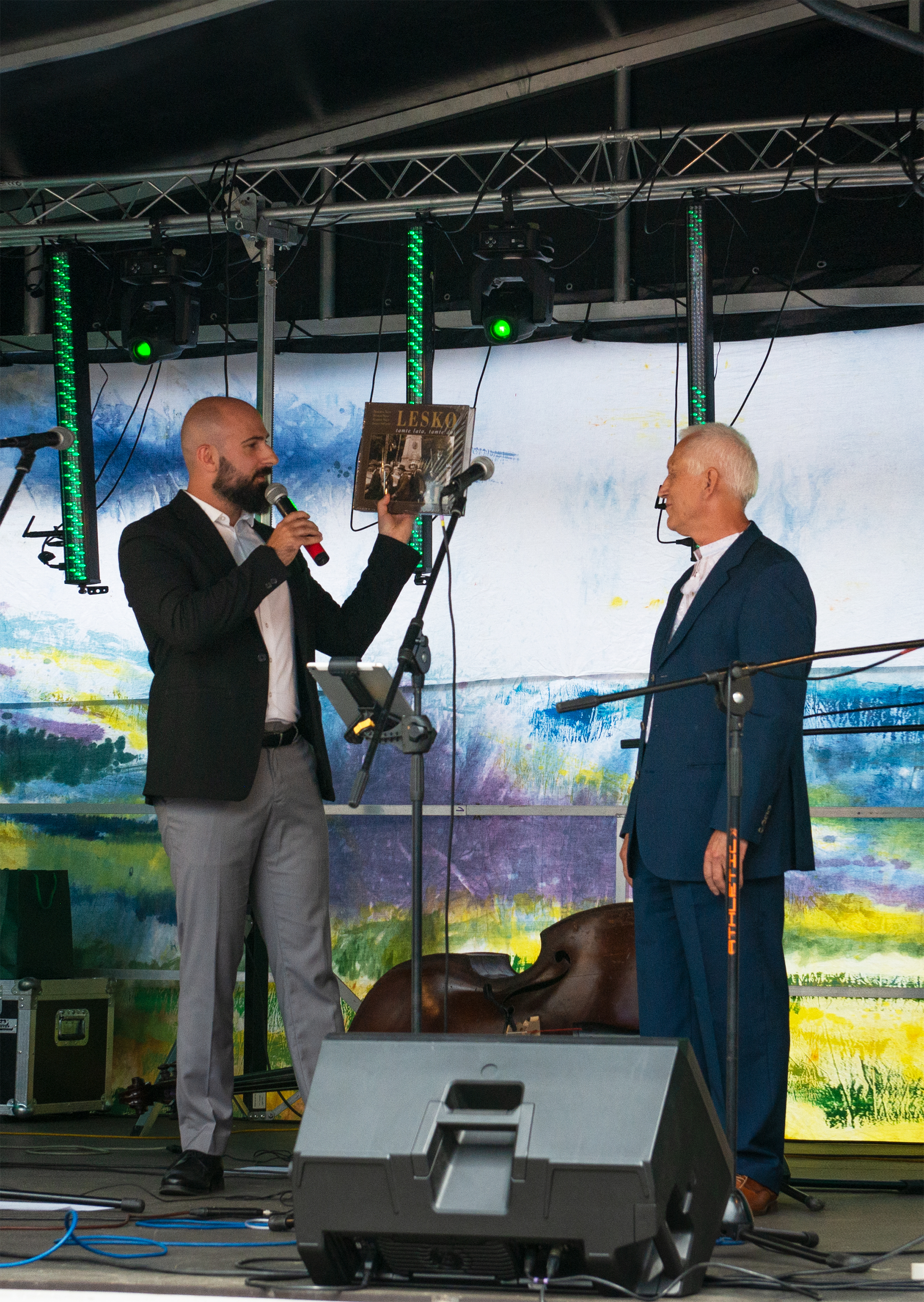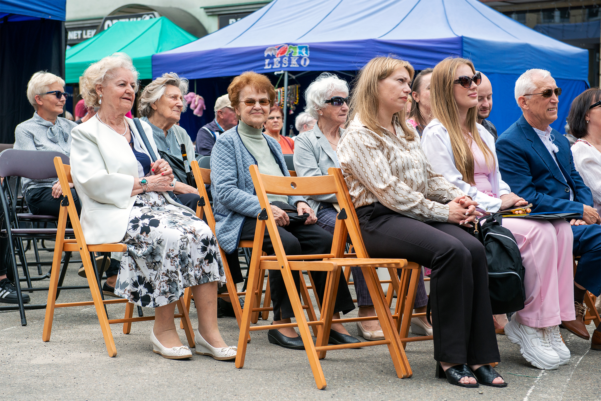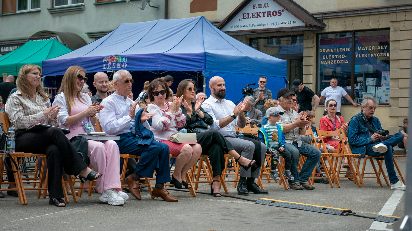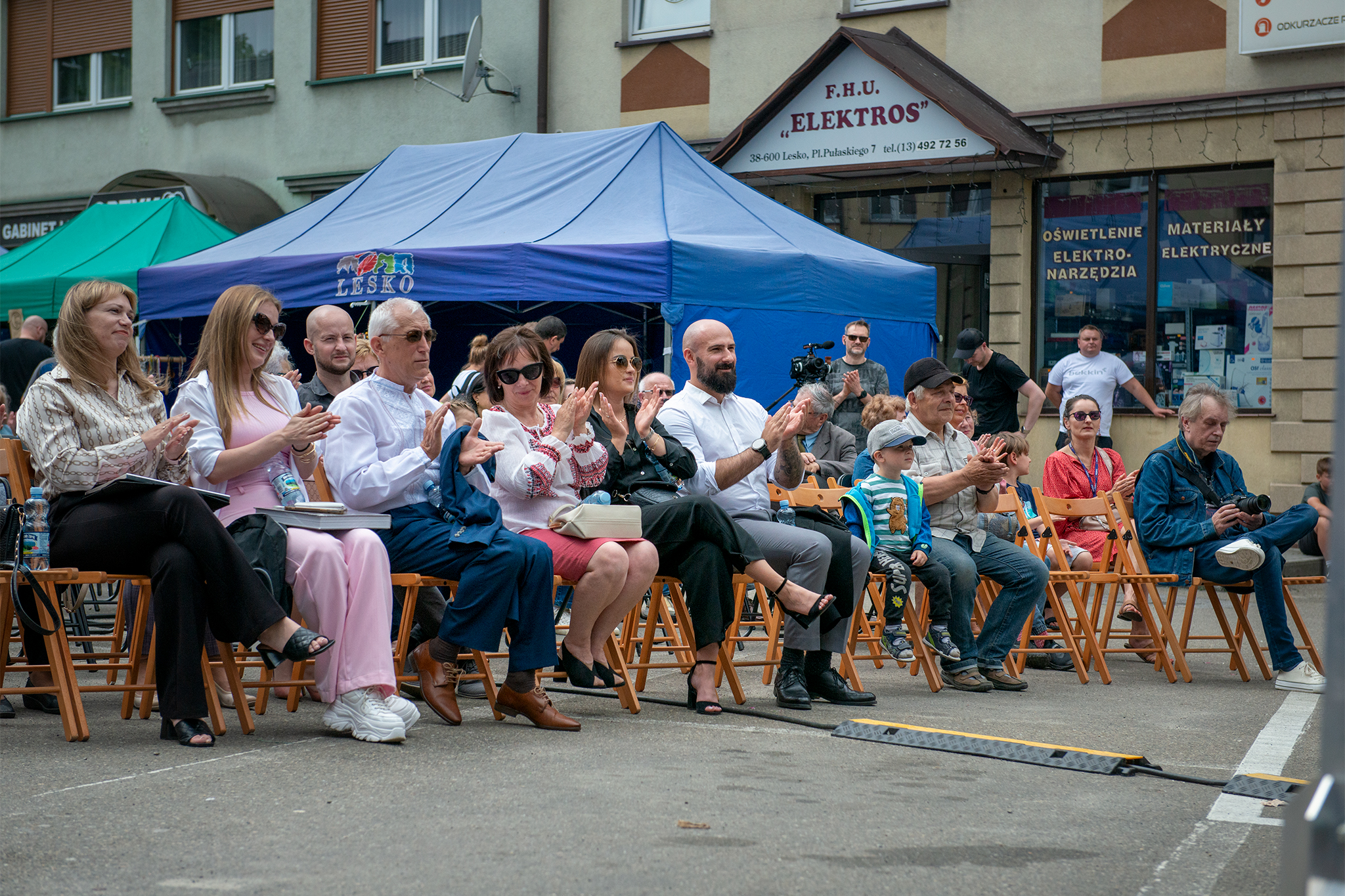 - Cieszę się niezmiernie, że po trzech latach od napisania projektu pod nazwą „Lesko i Chust – historia naszą siłą”, możemy w końcu spotkać się w leskim rynku by wspólnie, z naszymi partnerami i przyjaciółmi z Chustu, świętować i realizować działania projektowe. Czekaliśmy na ten dzień bardzo długo ze względu na przesunięcia związane najpierw z pandemią covid, a następnie wojną w Ukrainie. W imieniu swoim i mieszkańców Gminy Lesko pragnę wyrazić słowa największego podziękowania i uznania za owocną współpracę w trakcie realizacji projektu. Nasze wspólne działania wzmacniają wzajemne partnerstwo, jak też pokazują jak ważne są kontakty karpacko-zakarpackie dla kultywowania wspólnej historii, dla sąsiedzkiego dobra oraz wzajemnego zrozumienia i przyjaźni narodów Polskiego i Ukraińskiego. Na koniec chcę podziękować wszystkim osobom zaangażowanym w projekt i w organizację tego wydarzenia. Dzięki Wam możemy pokazać jak bogate kulturowo i historycznie jest miasto Lesko. – mówił ze sceny Burmistrz Adam Snarski w towarzystwie Zastępcy Mera Chustu Ivana Fetko.