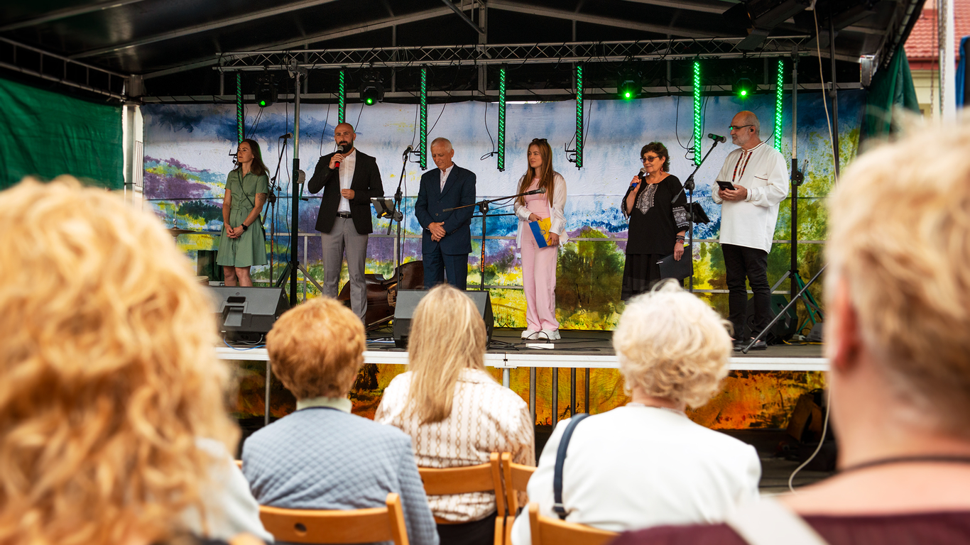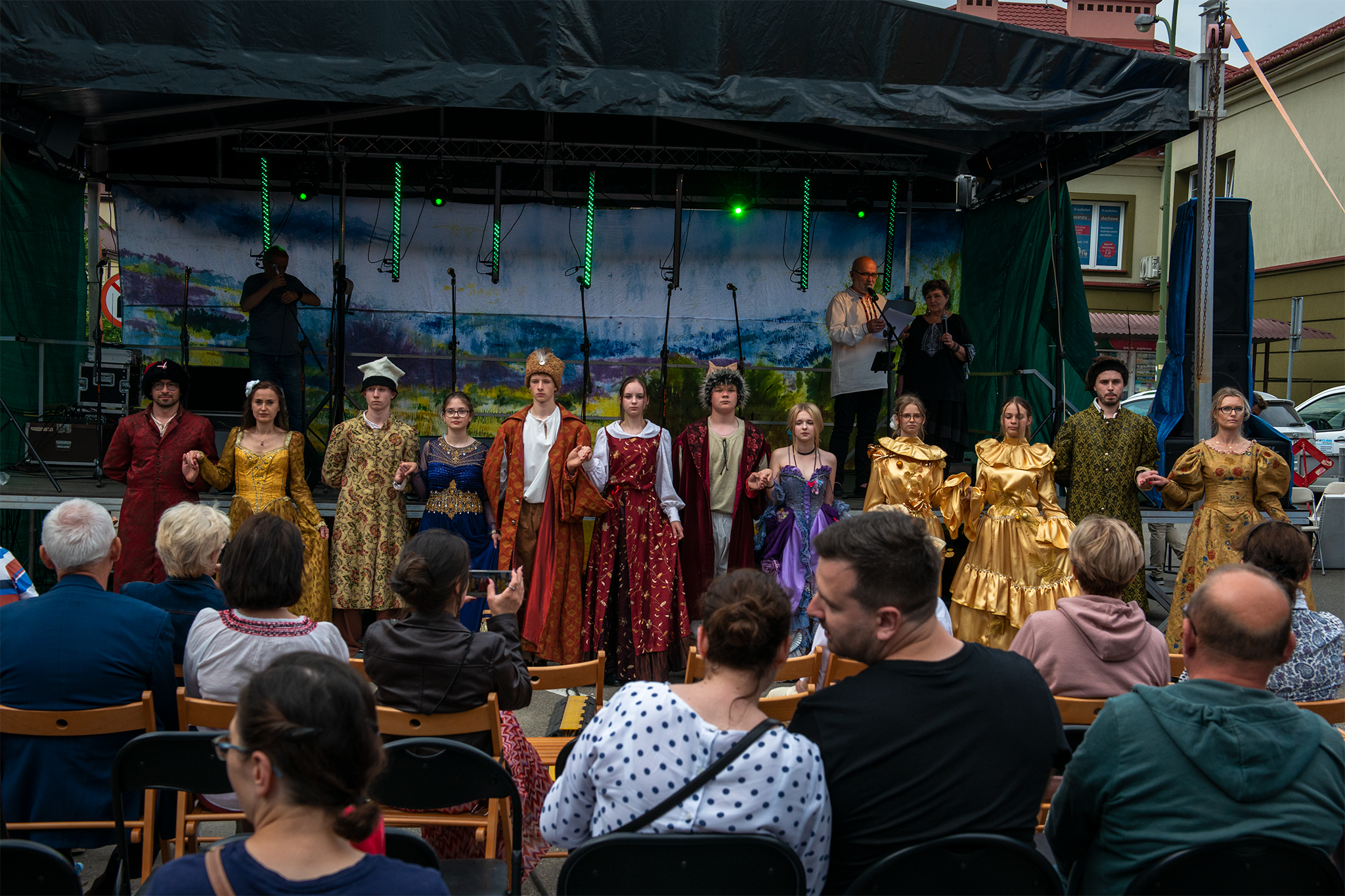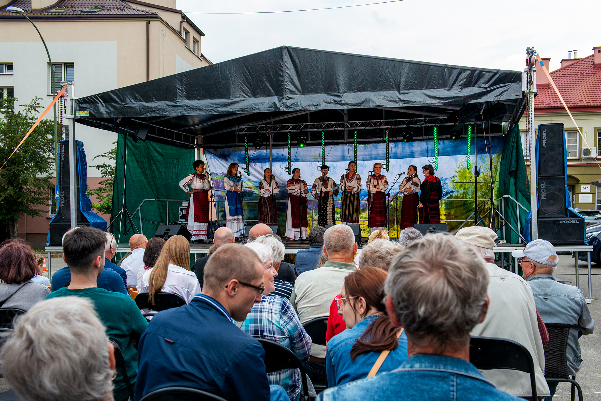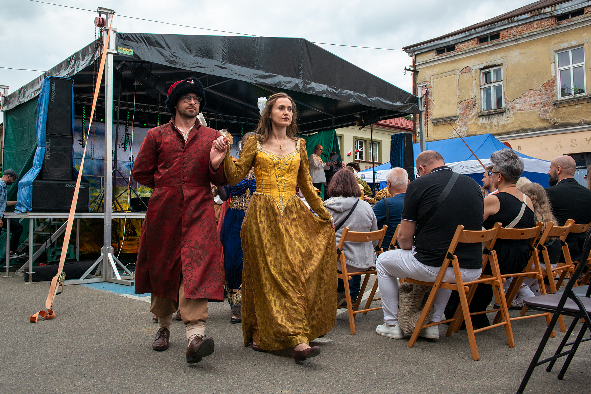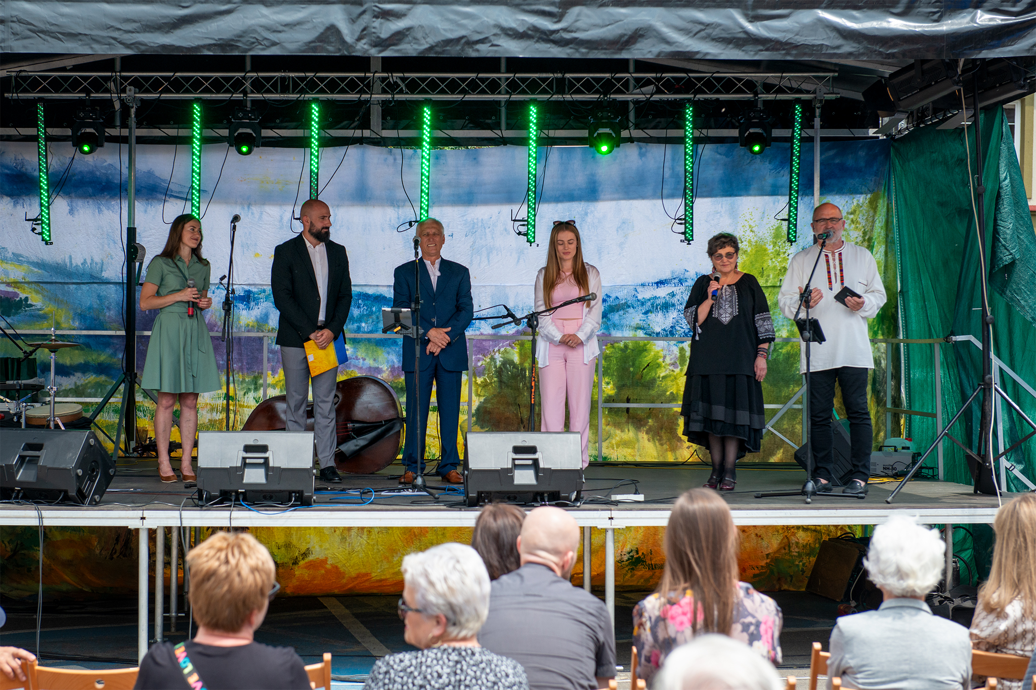 - Cieszę się niezmiernie, że po trzech latach od napisania projektu pod nazwą „Lesko i Chust – historia naszą siłą”, możemy w końcu spotkać się w leskim rynku by wspólnie, z naszymi partnerami i przyjaciółmi z Chustu, świętować i realizować działania projektowe. Czekaliśmy na ten dzień bardzo długo ze względu na przesunięcia związane najpierw z pandemią covid, a następnie wojną w Ukrainie. W imieniu swoim i mieszkańców Gminy Lesko pragnę wyrazić słowa największego podziękowania i uznania za owocną współpracę w trakcie realizacji projektu. Nasze wspólne działania wzmacniają wzajemne partnerstwo, jak też pokazują jak ważne są kontakty karpacko-zakarpackie dla kultywowania wspólnej historii, dla sąsiedzkiego dobra oraz wzajemnego zrozumienia i przyjaźni narodów Polskiego i Ukraińskiego. Na koniec chcę podziękować wszystkim osobom zaangażowanym w projekt i w organizację tego wydarzenia. Dzięki Wam możemy pokazać jak bogate kulturowo i historycznie jest miasto Lesko. – mówił ze sceny Burmistrz Adam Snarski w towarzystwie Zastępcy Mera Chustu Ivana Fetko.