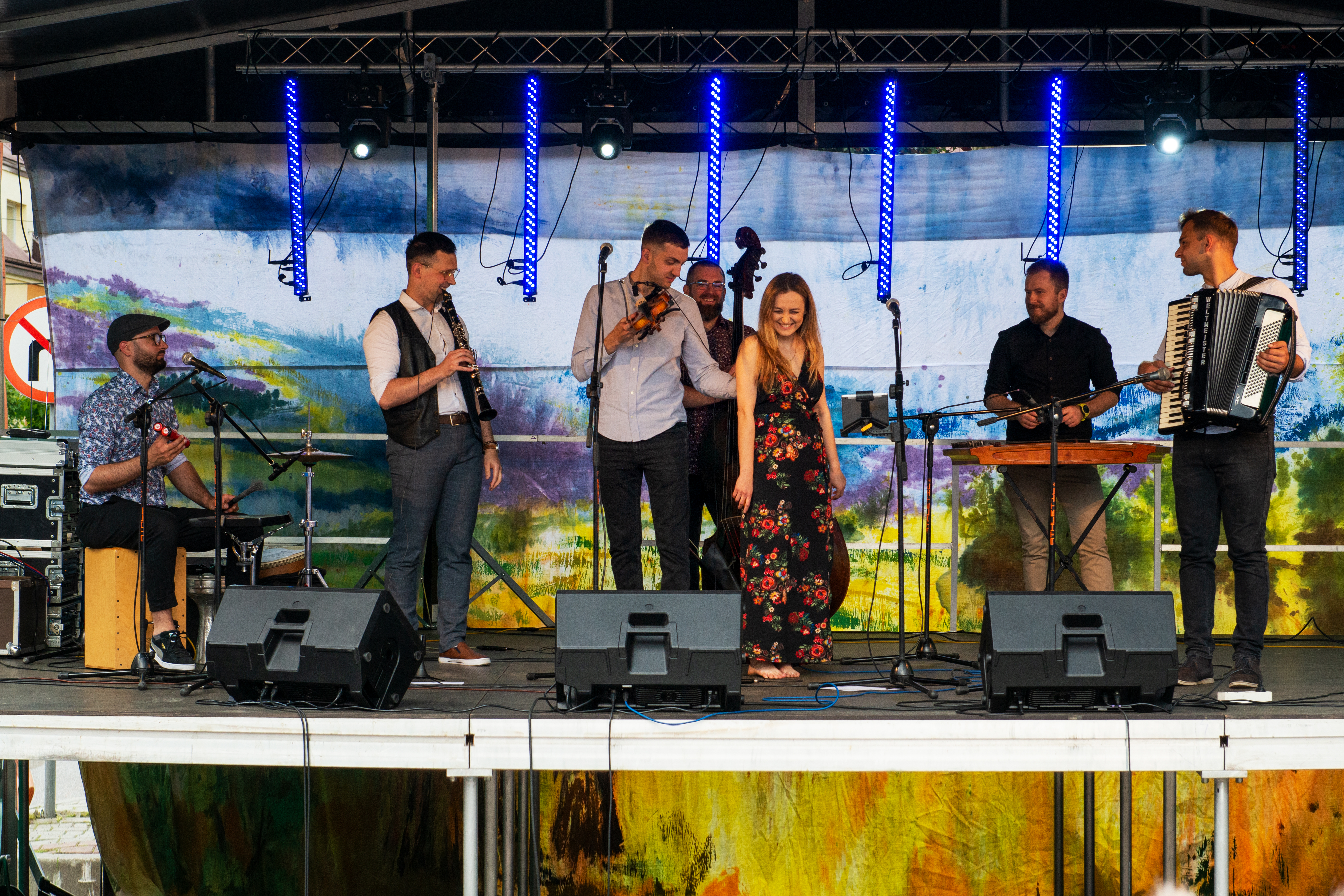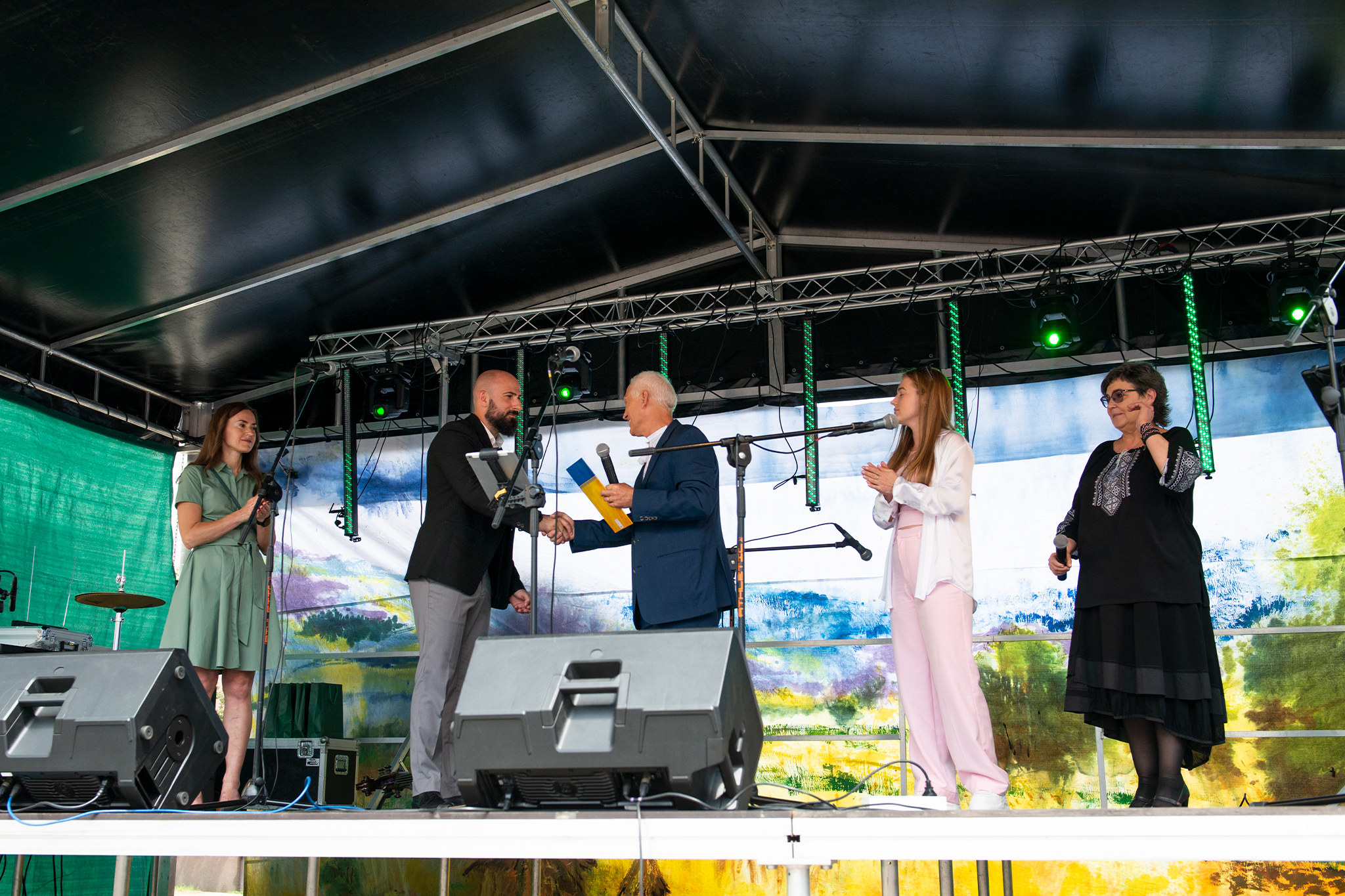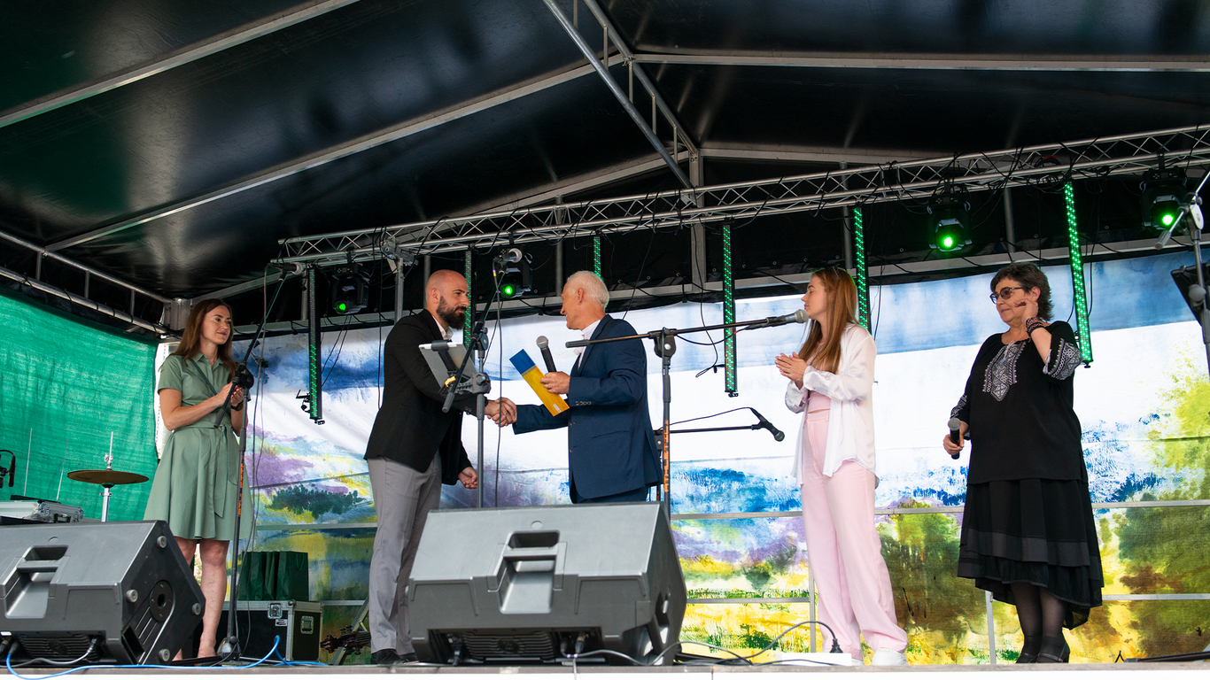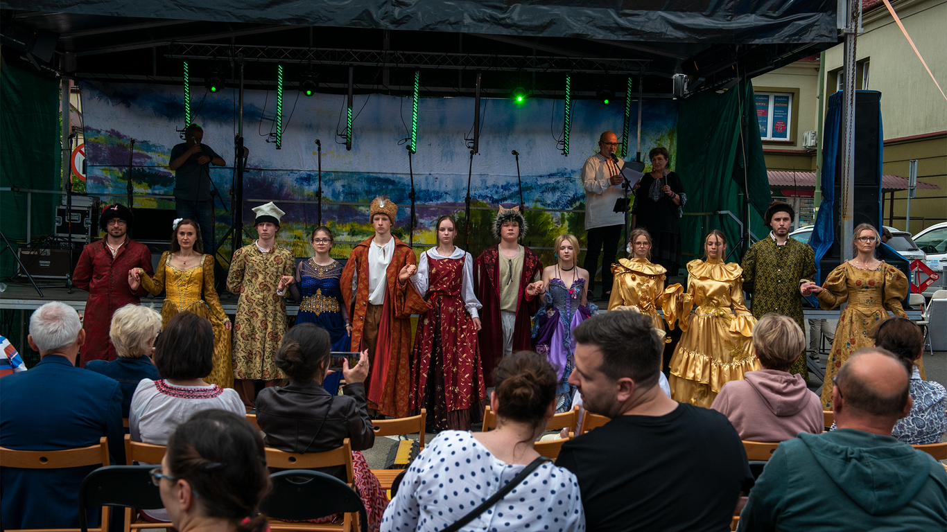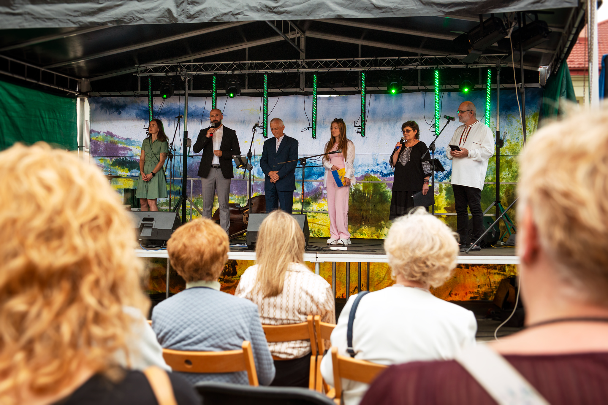 - Cieszę się niezmiernie, że po trzech latach od napisania projektu pod nazwą „Lesko i Chust – historia naszą siłą”, możemy w końcu spotkać się w leskim rynku by wspólnie, z naszymi partnerami i przyjaciółmi z Chustu, świętować i realizować działania projektowe. Czekaliśmy na ten dzień bardzo długo ze względu na przesunięcia związane najpierw z pandemią covid, a następnie wojną w Ukrainie. W imieniu swoim i mieszkańców Gminy Lesko pragnę wyrazić słowa największego podziękowania i uznania za owocną współpracę w trakcie realizacji projektu. Nasze wspólne działania wzmacniają wzajemne partnerstwo, jak też pokazują jak ważne są kontakty karpacko-zakarpackie dla kultywowania wspólnej historii, dla sąsiedzkiego dobra oraz wzajemnego zrozumienia i przyjaźni narodów Polskiego i Ukraińskiego. Na koniec chcę podziękować wszystkim osobom zaangażowanym w projekt i w organizację tego wydarzenia. Dzięki Wam możemy pokazać jak bogate kulturowo i historycznie jest miasto Lesko. – mówił ze sceny Burmistrz Adam Snarski w towarzystwie Zastępcy Mera Chustu Ivana Fetko.