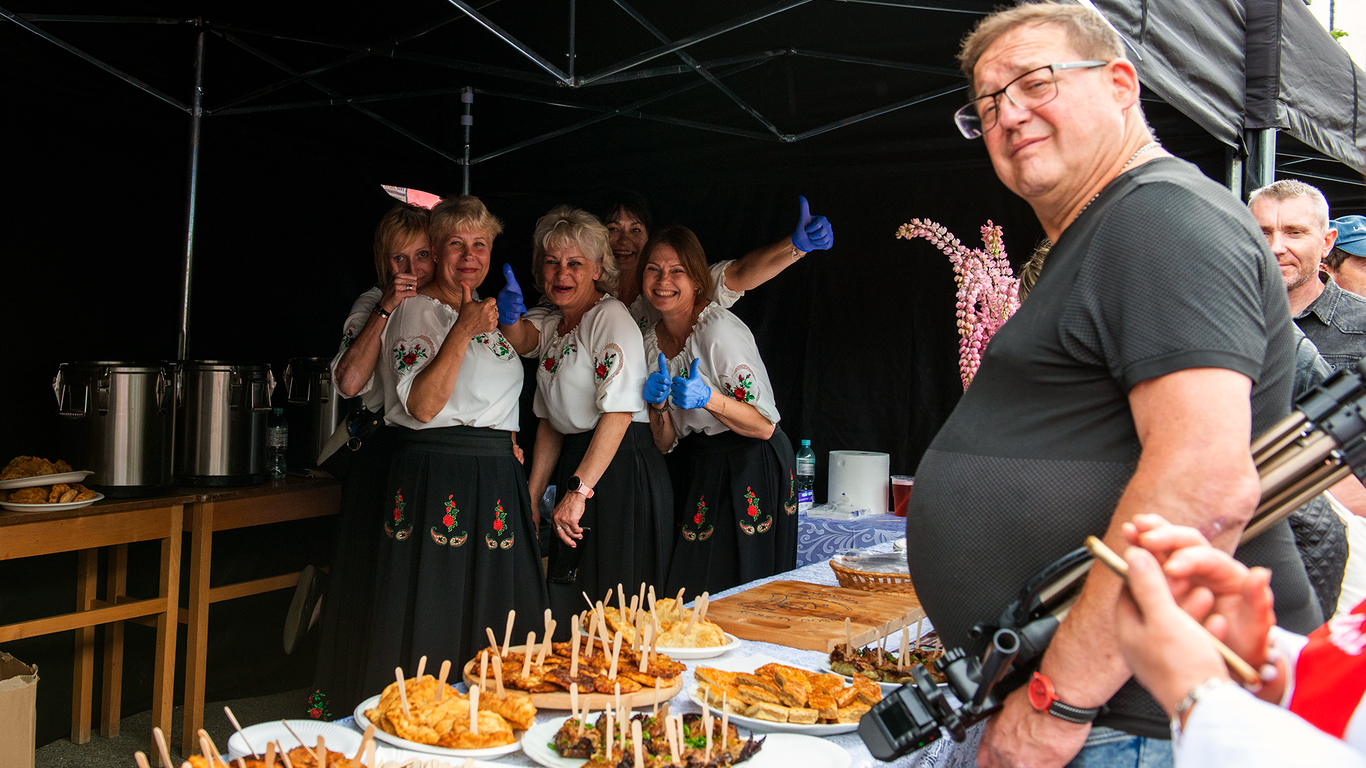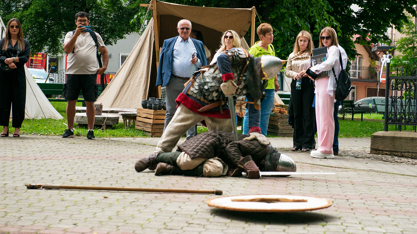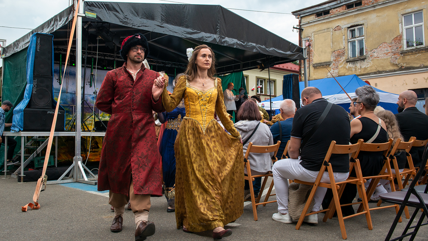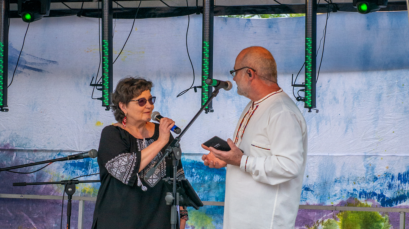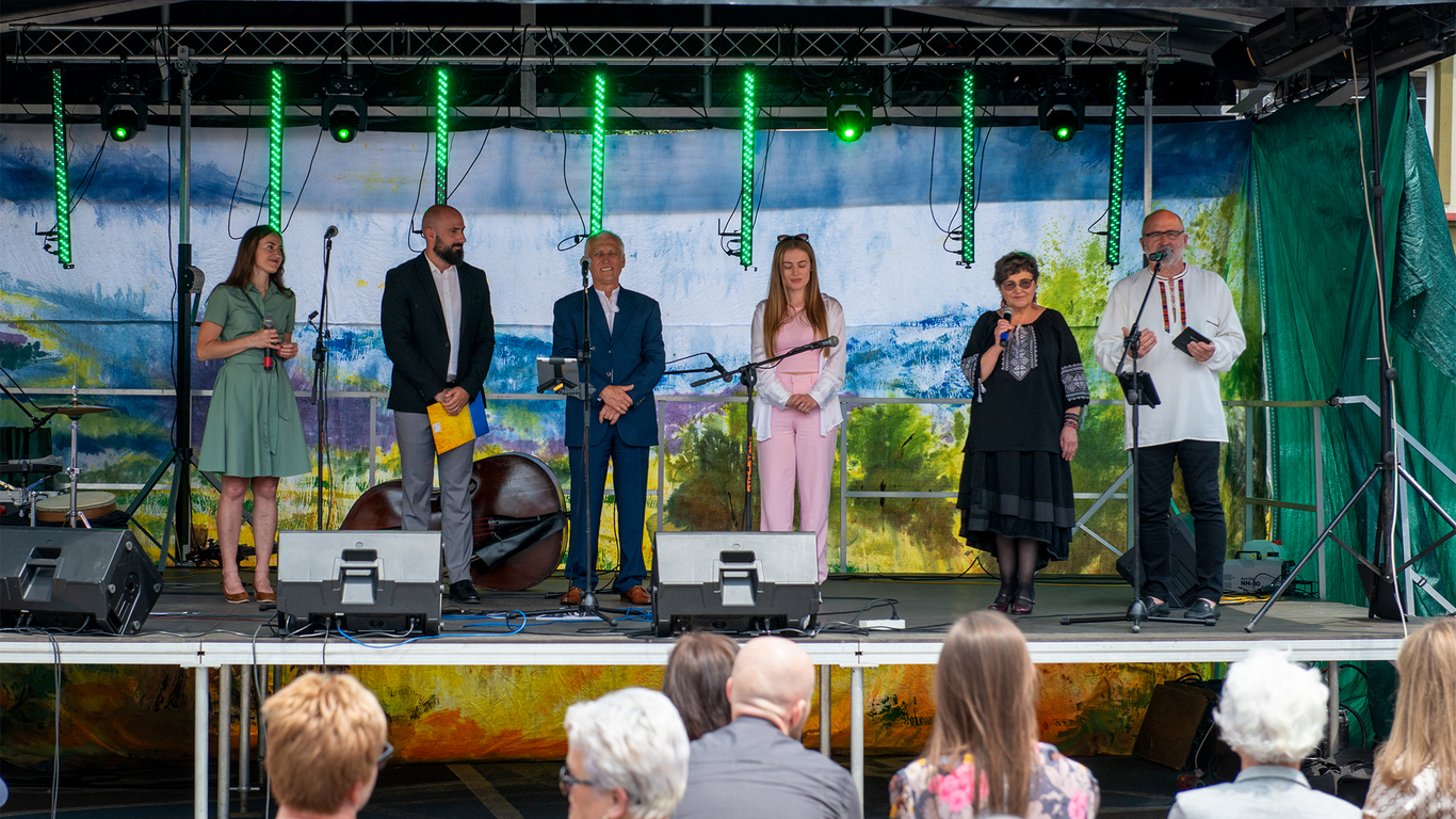 - Cieszę się niezmiernie, że po trzech latach od napisania projektu pod nazwą „Lesko i Chust – historia naszą siłą”, możemy w końcu spotkać się w leskim rynku by wspólnie, z naszymi partnerami i przyjaciółmi z Chustu, świętować i realizować działania projektowe. Czekaliśmy na ten dzień bardzo długo ze względu na przesunięcia związane najpierw z pandemią covid, a następnie wojną w Ukrainie. W imieniu swoim i mieszkańców Gminy Lesko pragnę wyrazić słowa największego podziękowania i uznania za owocną współpracę w trakcie realizacji projektu. Nasze wspólne działania wzmacniają wzajemne partnerstwo, jak też pokazują jak ważne są kontakty karpacko-zakarpackie dla kultywowania wspólnej historii, dla sąsiedzkiego dobra oraz wzajemnego zrozumienia i przyjaźni narodów Polskiego i Ukraińskiego. Na koniec chcę podziękować wszystkim osobom zaangażowanym w projekt i w organizację tego wydarzenia. Dzięki Wam możemy pokazać jak bogate kulturowo i historycznie jest miasto Lesko. – mówił ze sceny Burmistrz Adam Snarski w towarzystwie Zastępcy Mera Chustu Ivana Fetko.
