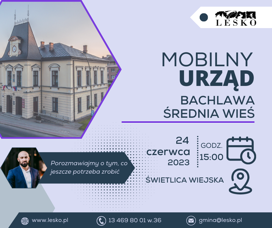Burmistrz Miasta i Gminy Lesko zaprasza mieszkańców Bachlawy i Średniej Wsi na spotkanie w świetlicy wiejskiej realizowane w ramach Mobilnego Urzędu.