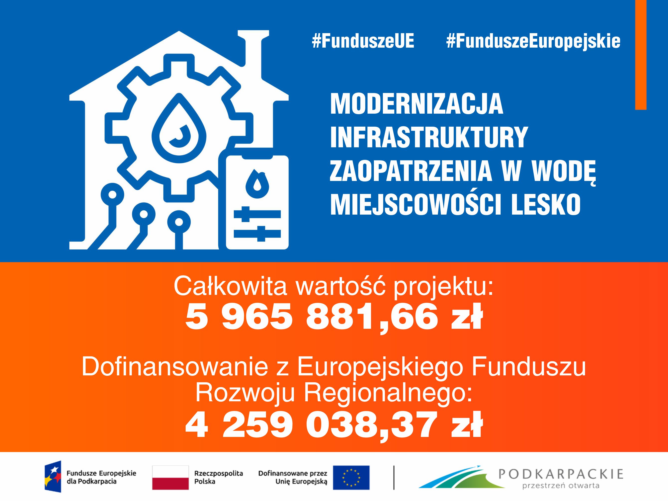 Ulice Leska tętnią dziś nie tylko codziennym ruchem mieszkańców, ale także odgłosem maszyn budowlanych. W naszym mieście trwa bowiem duża inwestycja – „Modernizacja infrastruktury zaopatrzenia w wodę miejscowości Lesko” – realizowana z programu Fundusze Europejskie dla Podkarpacia 2021-2027.