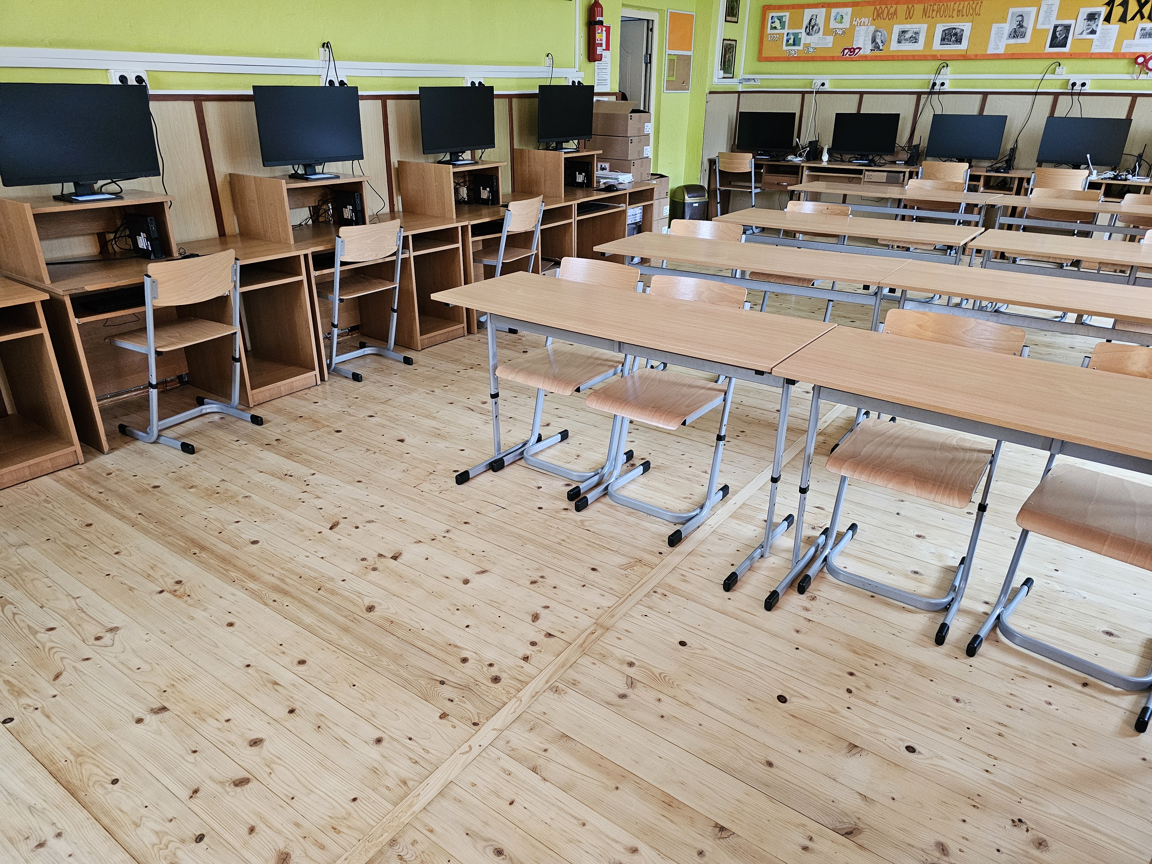 To jednak nie jedyna zmiana, na którą mogli liczyć uczniowie. W szkolnej pracowni komputerowej odnowiono niemal całkowicie zniszczoną, drewnianą podłogę. Dzięki profesjonalnemu cyklinowaniu odzyskała dawny blask i znów cieszy oko, tworząc przyjazne miejsce do nauki. Koszt prac wyniósł 9 000 zł.