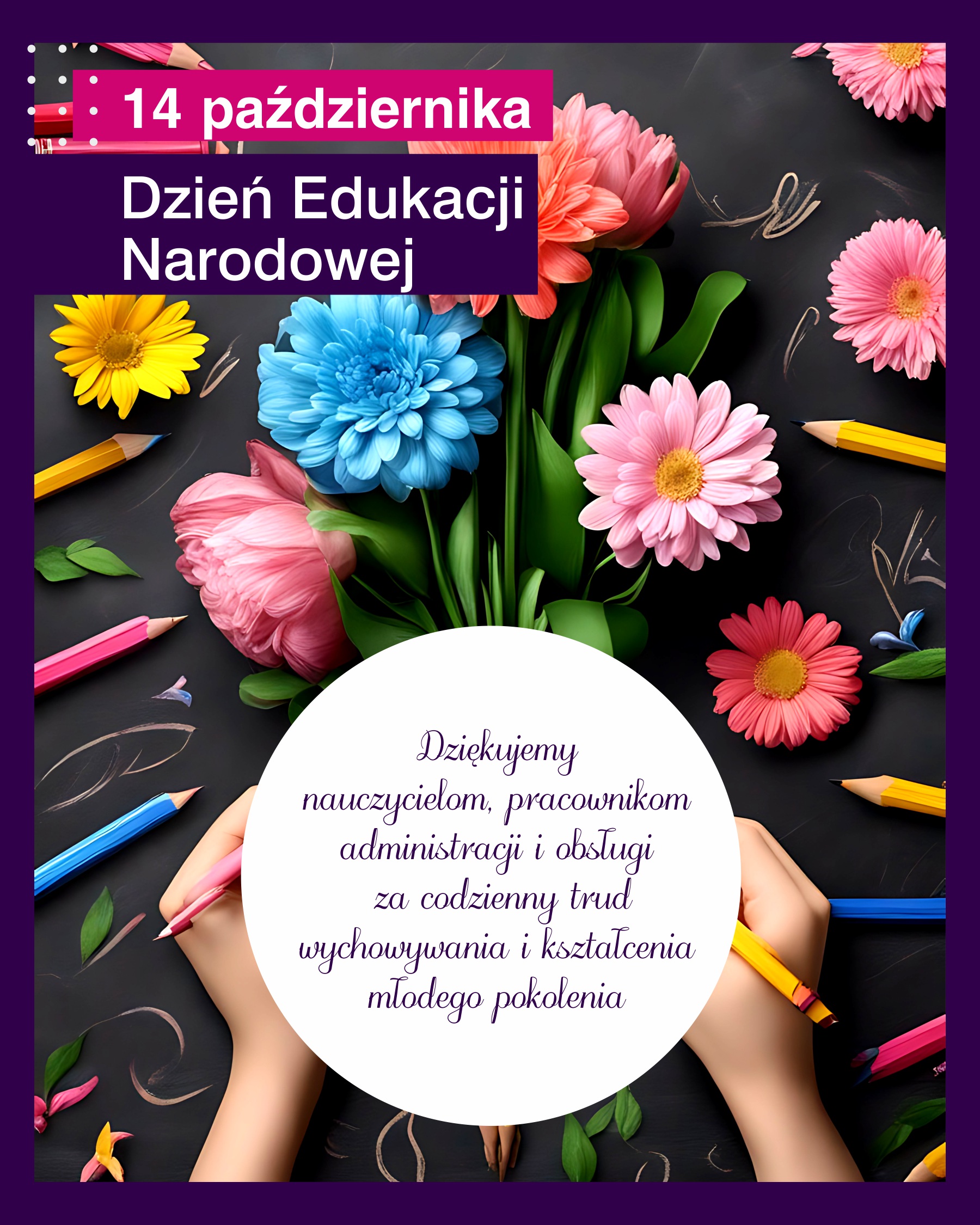 Z okazji Dnia Edukacji Narodowej pragnę złożyć Państwu najserdeczniejsze podziękowania i wyrazy głębokiego szacunku za codzienny trud, oddanie i odpowiedzialność, z jaką wypełniacie swoją misję wychowania i kształcenia młodego pokolenia mieszkańców naszej gminy.