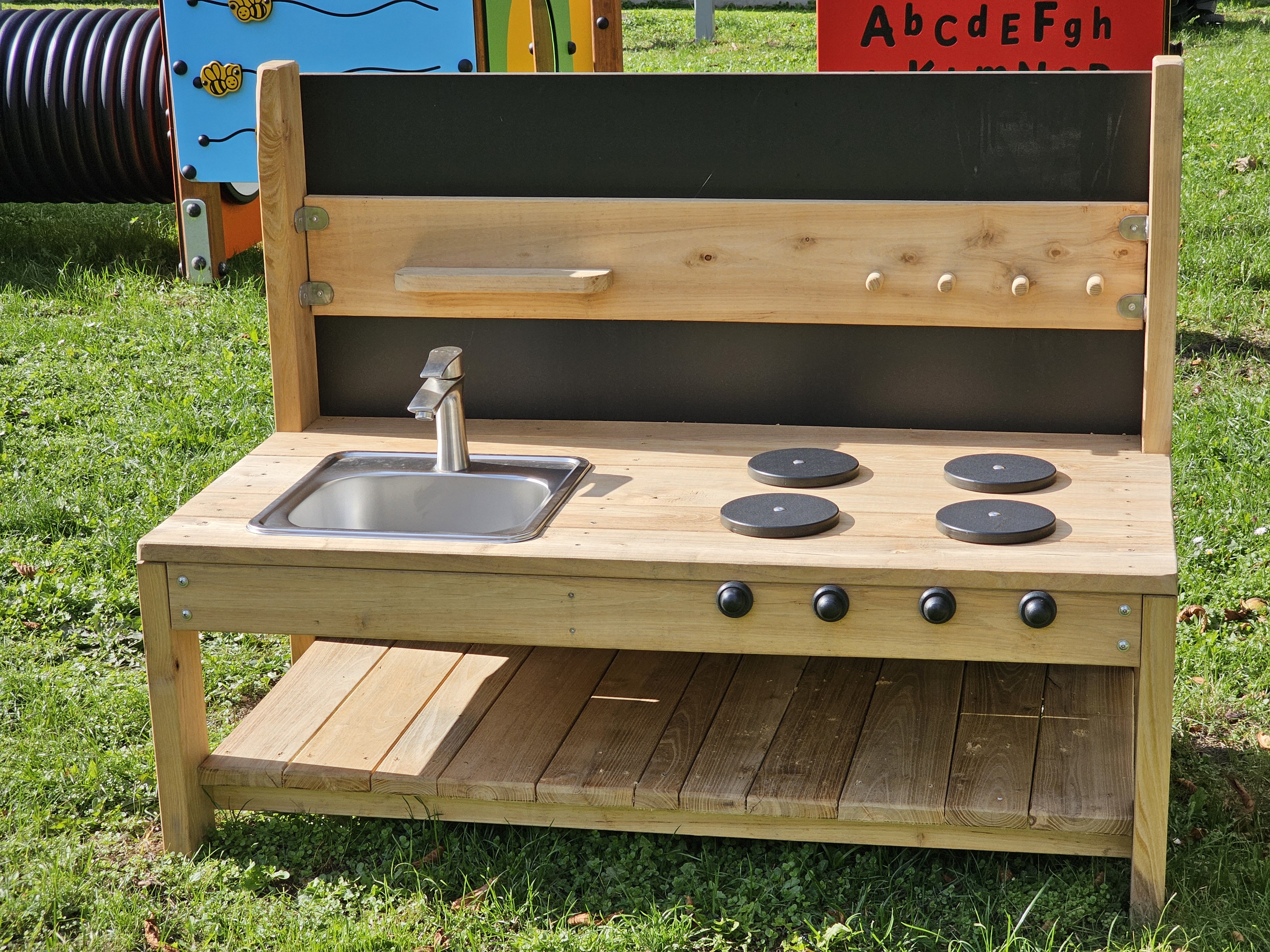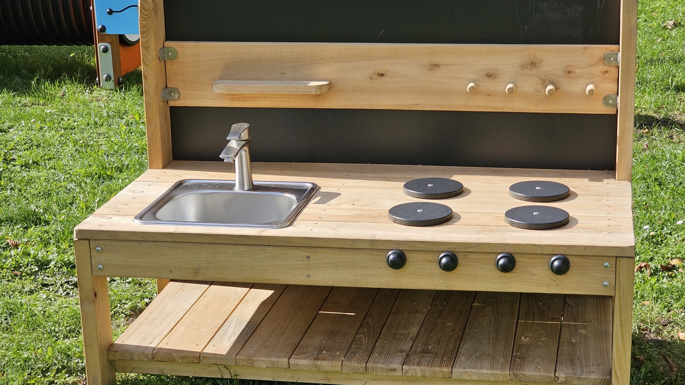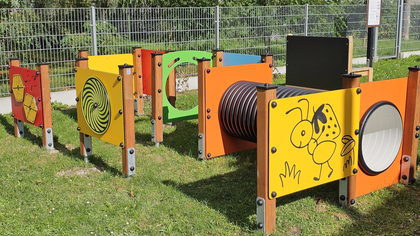 Dla większego komfortu najmłodszych wykonano również zacienienie części terenu przy pomocy żagli przeciwsłonecznych oraz przenośne ogrodzenie, umożliwiające elastyczne wydzielanie przestrzeni do różnych form zabawy.
