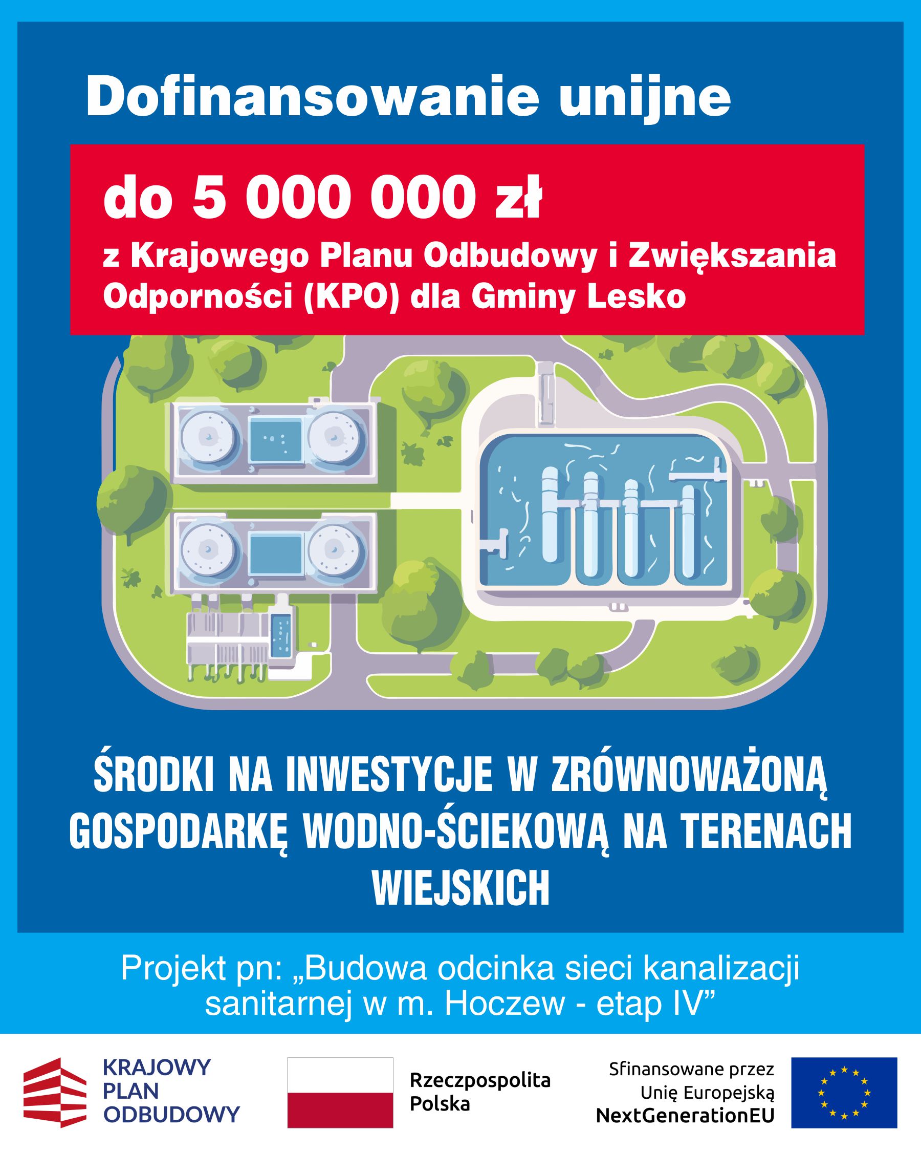 Gmina Lesko pozyskała kolejne znaczące środki zewnętrzne na rozwój infrastruktury komunalnej. Tym razem samorząd otrzyma dofinansowanie unijne do 5 milionów złotych z Krajowego Planu Odbudowy i Zwiększania Odporności (KPO). Środki te przeznaczone zostaną na inwestycje w zrównoważoną gospodarkę wodno-ściekową na terenach wiejskich.