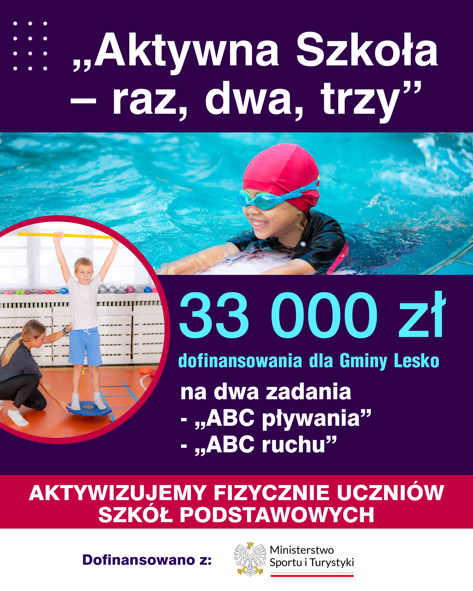 Gmina Lesko pozyskała dofinansowanie z Ministerstwa Sportu i Turystyki w ramach Funduszu Zajęć Sportowych dla Uczniów na rok 2025. Dzięki przyznanym środkom realizowany będzie projekt „Aktywna Szkoła – raz, dwa, trzy”, obejmujący dwa ważne zadania ukierunkowane na wspieranie aktywności fizycznej dzieci i młodzieży szkolnej.