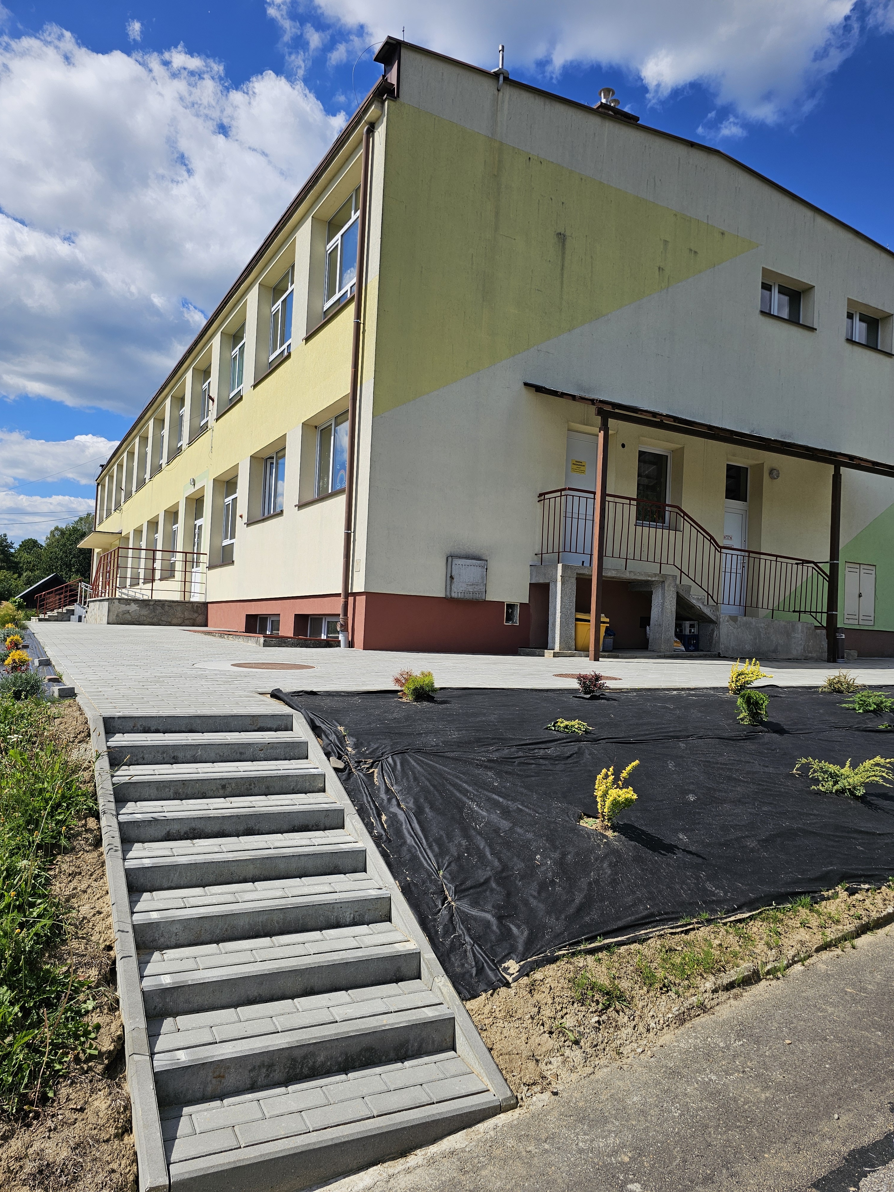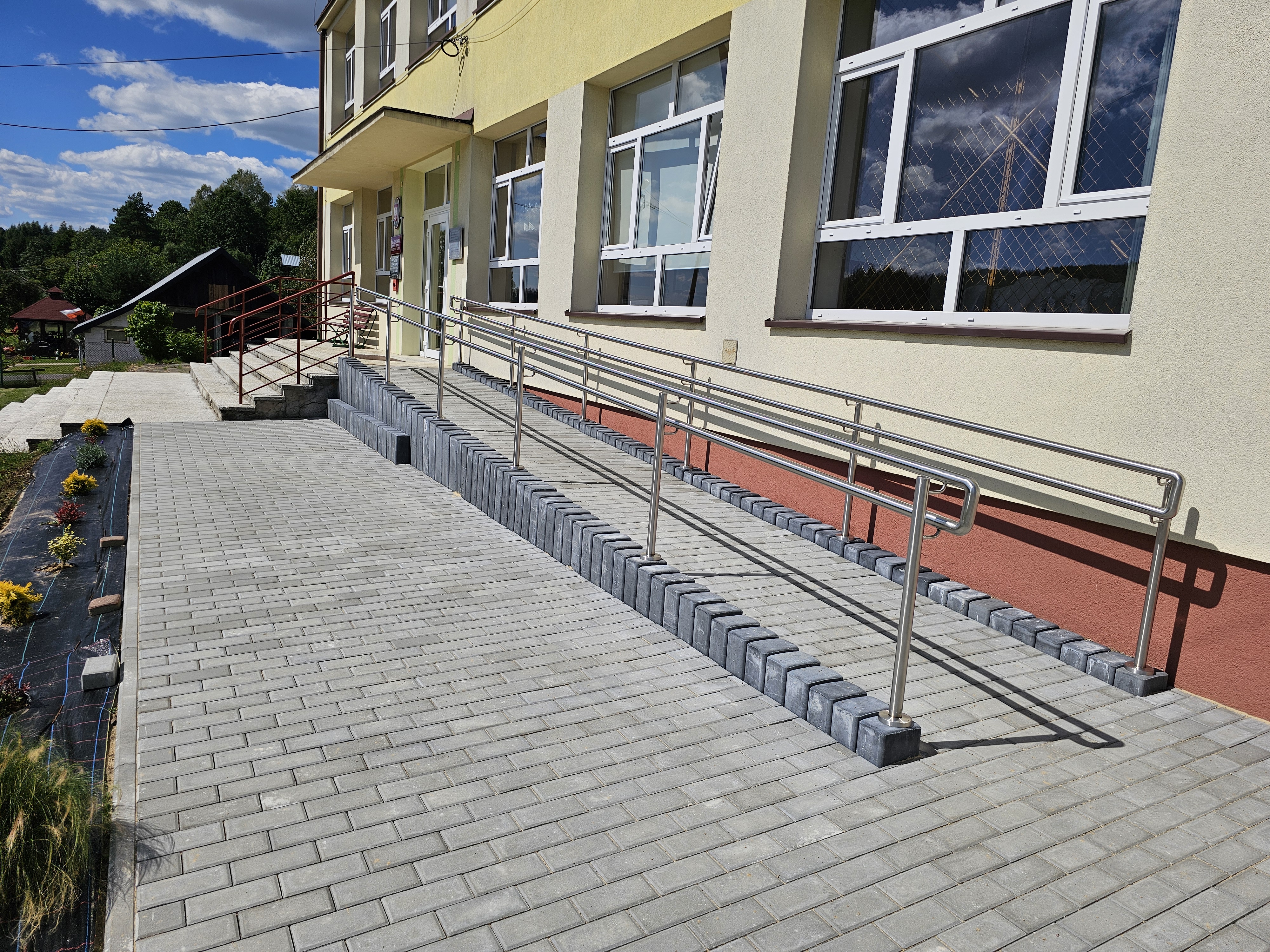 Zakres wykonanych prac obejmował wymianę drzwi wejściowych, budowę nowego chodnika i wyznaczenie miejsc parkingowych, a także wybudowanie podjazdu umożliwiającego swobodny dostęp do szkoły osobom poruszającym się na wózkach. Dodatkowo wyrównano teren wokół budynku oraz wykonano nową, bezpieczną nawierzchnię. Dzięki tym zmianom zlikwidowano bariery architektoniczne, które dotąd utrudniały korzystanie z placówki. Obiekt stał się bardziej funkcjonalny i przyjazny zarówno dla uczniów i rodziców, jak i dla seniorów czy opiekunów z małymi dziećmi.