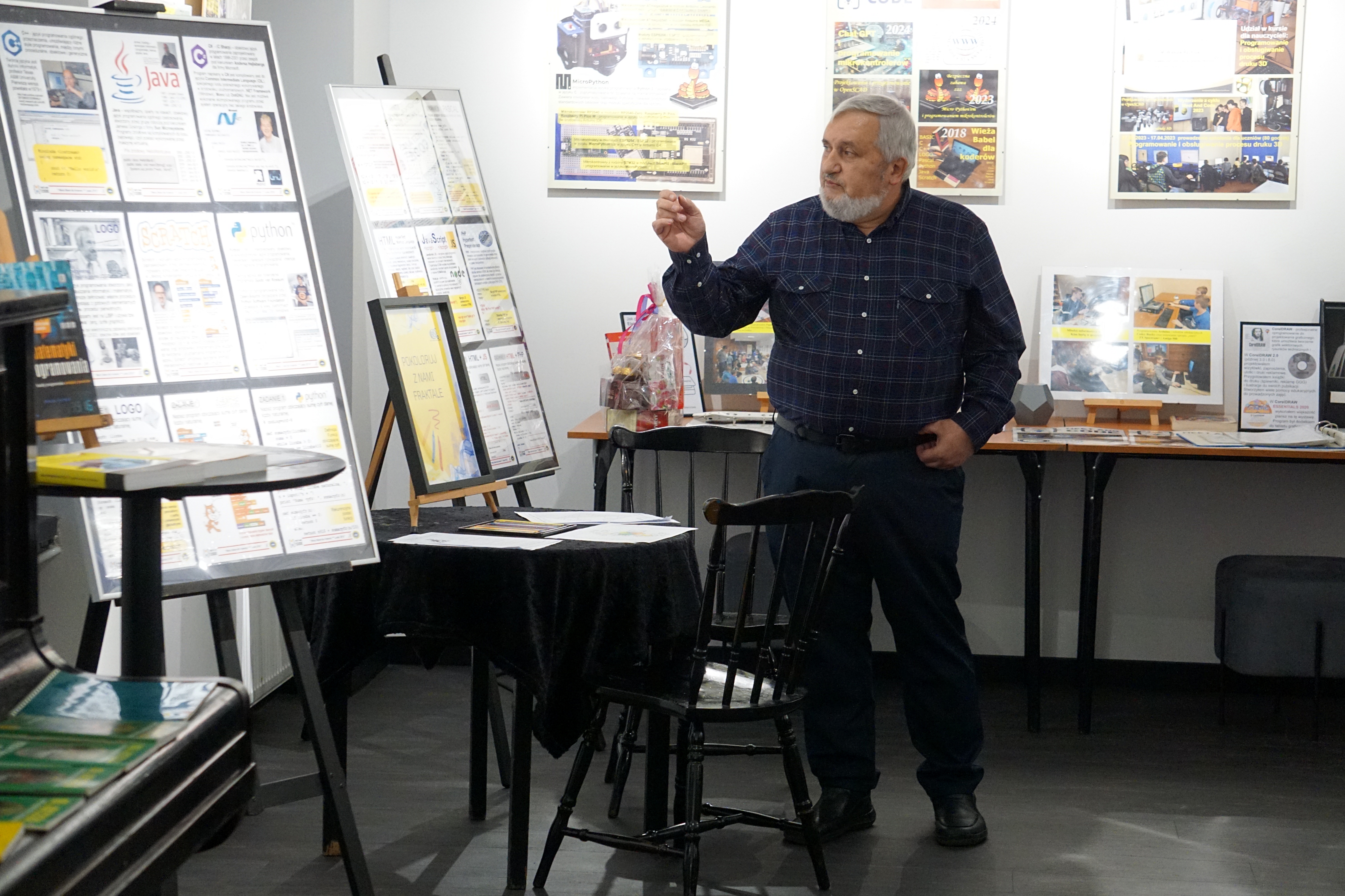 Prywatny jubileusz prowadzącego zajęcia, Wiesława Rychlickiego oraz temat wystawy poświęconej temu okresowi. Spotkania w tym czasie będą poświęcone wspomnieniom, programowaniu w różnych językach, z którymi autor wystawy miał kontakt i może je współcześnie pokazać oraz działającym sprzętem z epoki. Nie zabraknie robotów edukacyjnych.