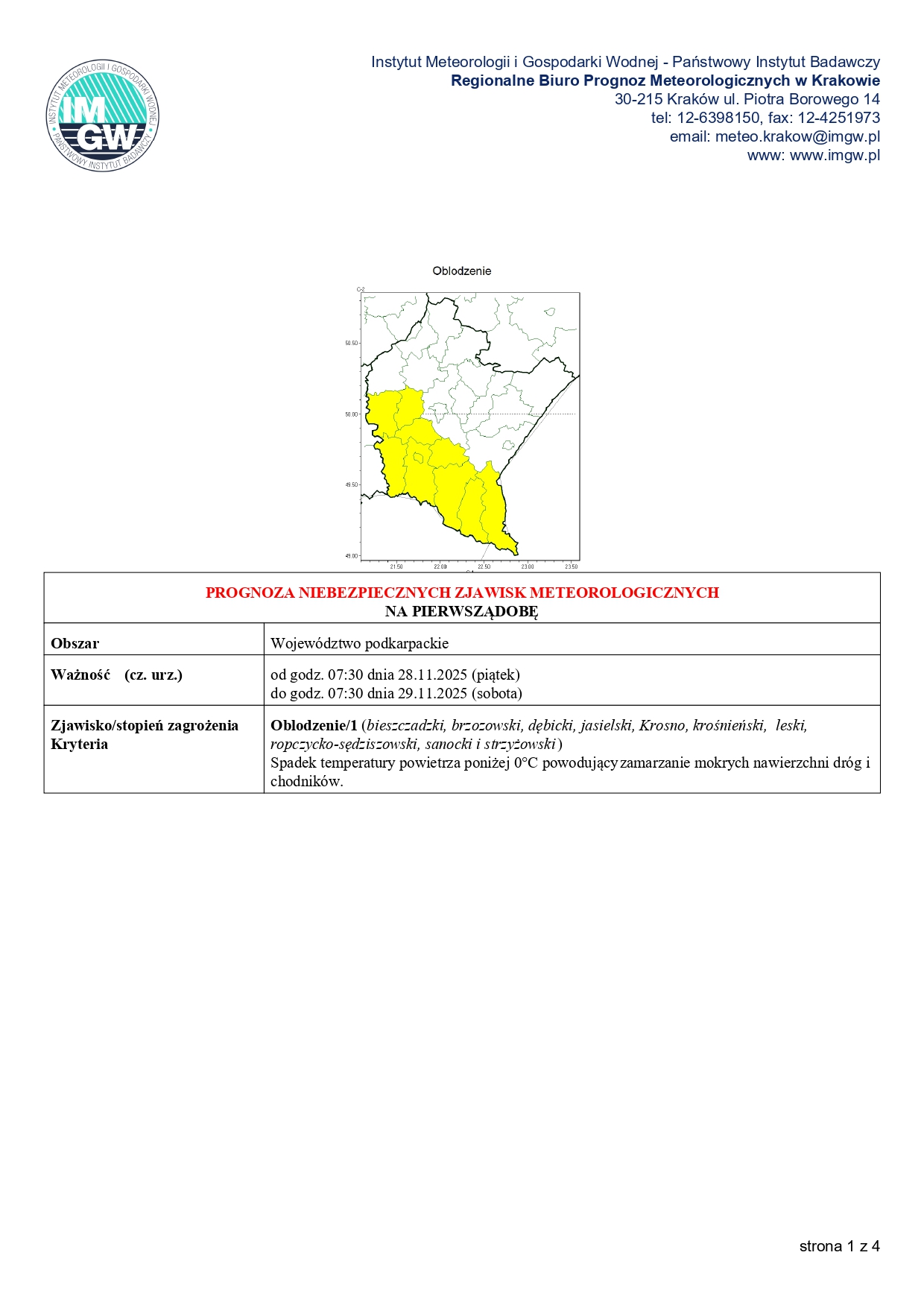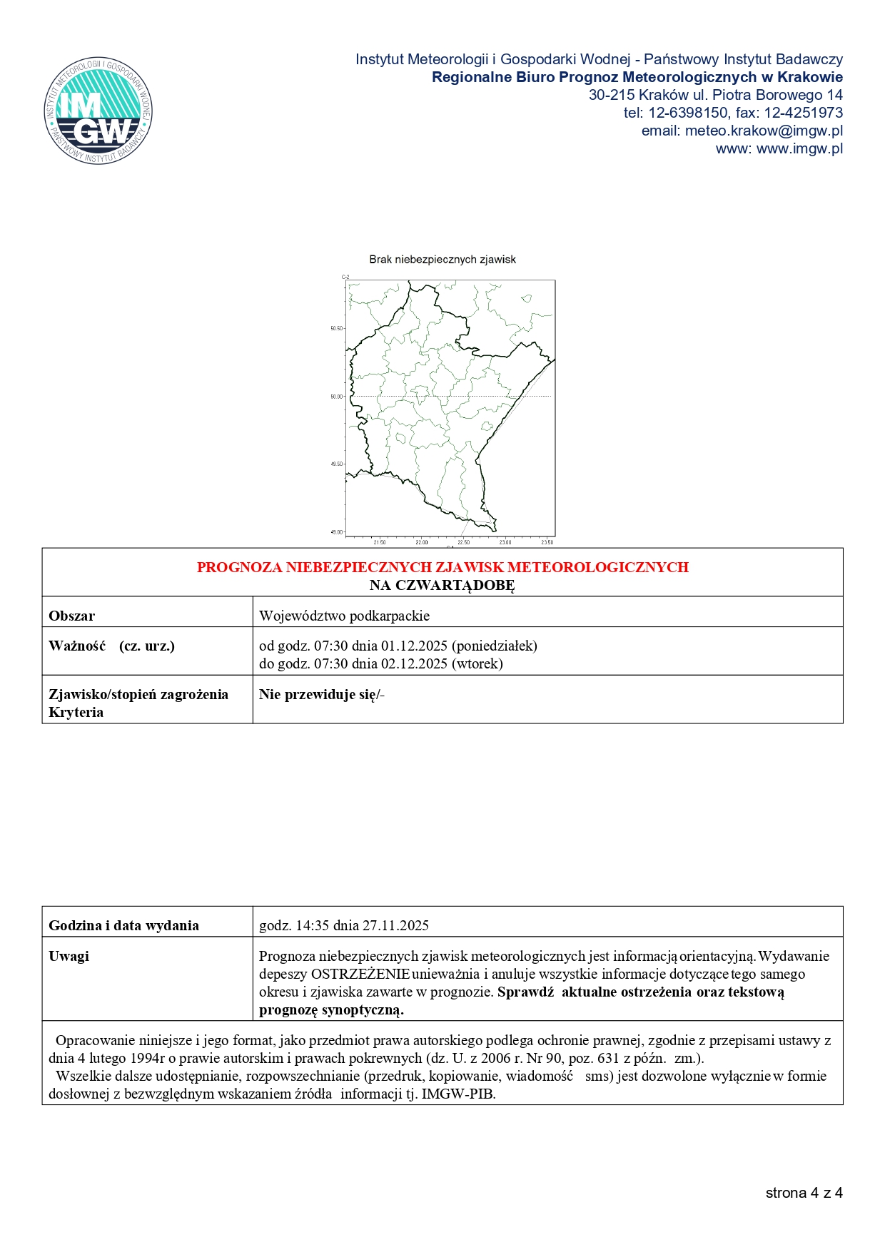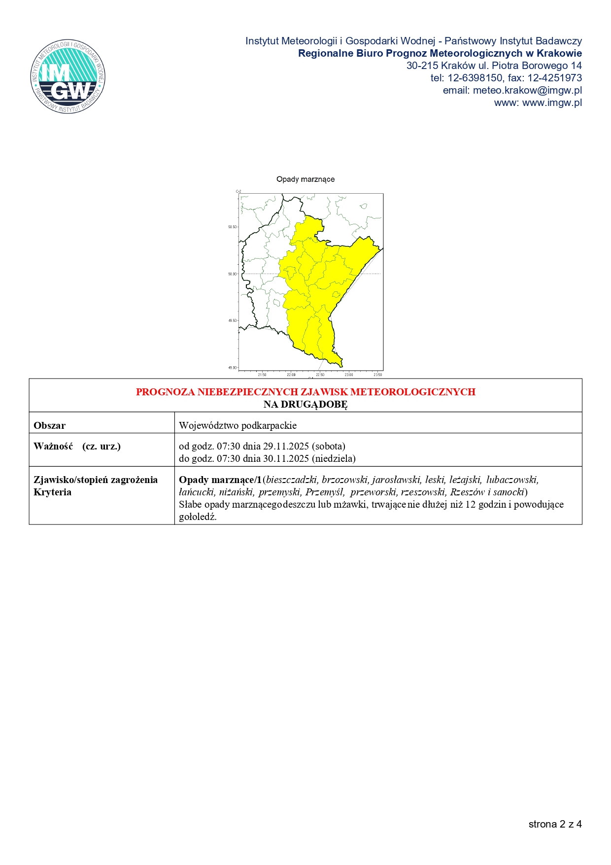 PROGNOZA POGODY DLA WOJ. PODKARPACKIEGO 29.11.2025-02.12.2025