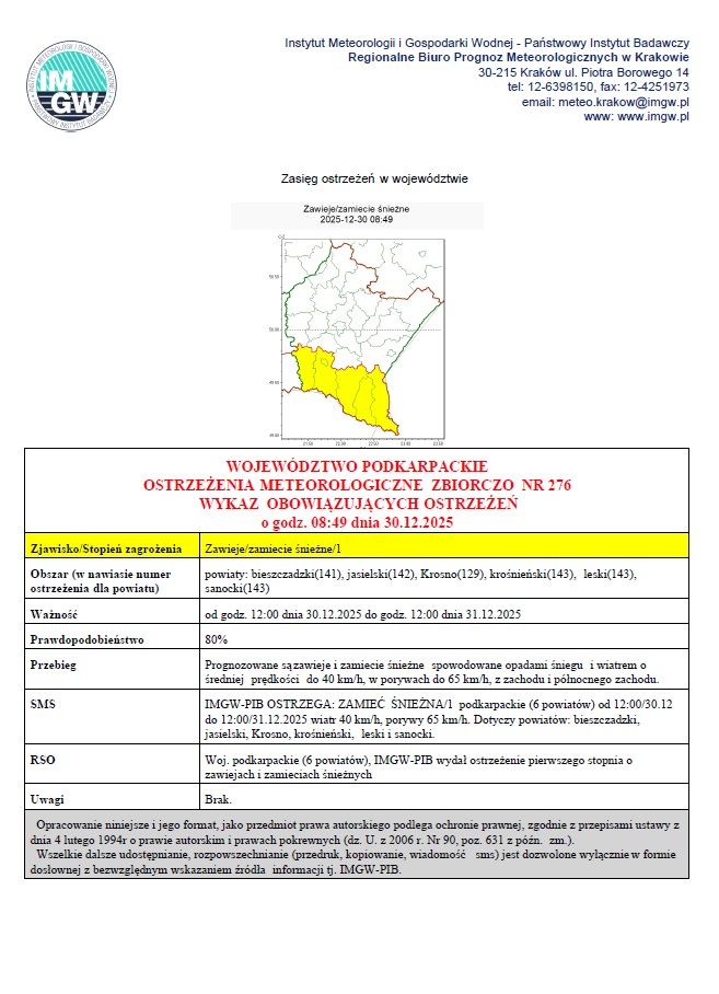 OSTRZEŻENIA METEOROLOGICZNE ZBIORCZO NR 276