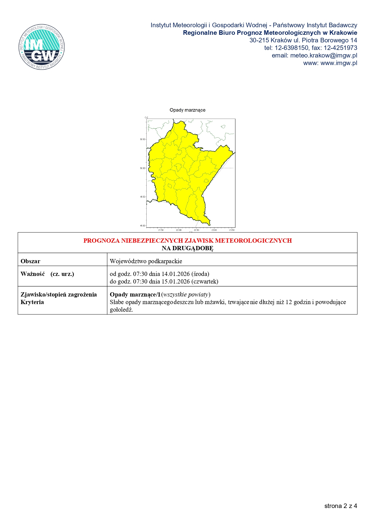 Prognoza niebezpiecznych zjawisk - wojewodztwo podkarpackie