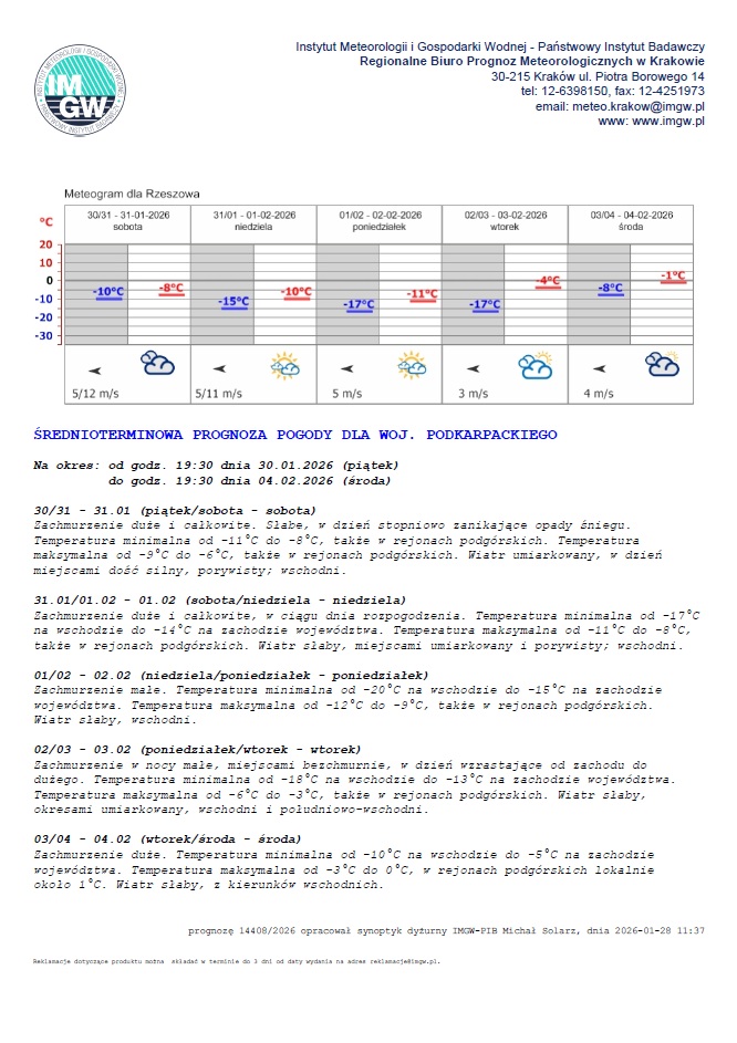 ŚREDNIOTERMINOWA PROGNOZA POGODY DLA WOJ. PODKARPACKIEGO