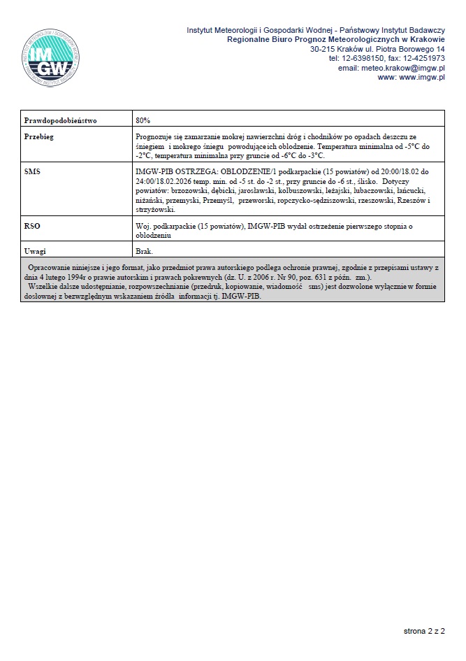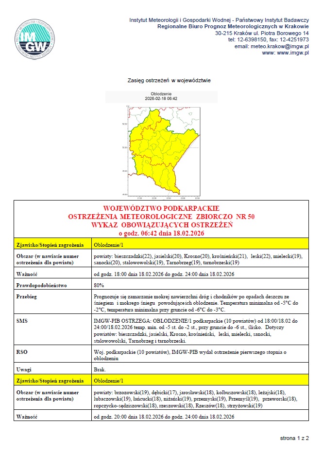 OSTRZEŻENIA METEOROLOGICZNE ZBIORCZO NR 50