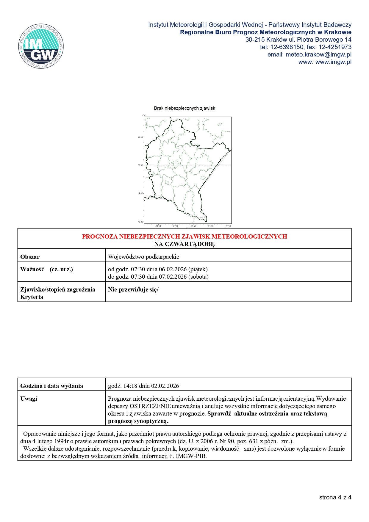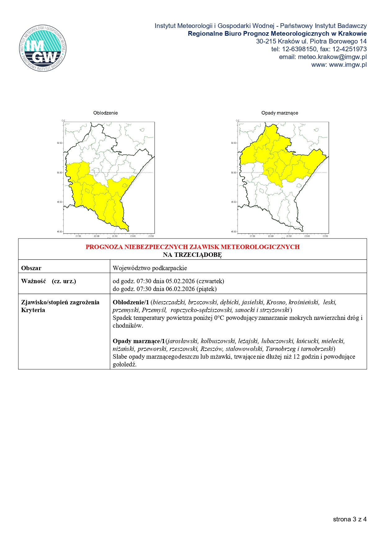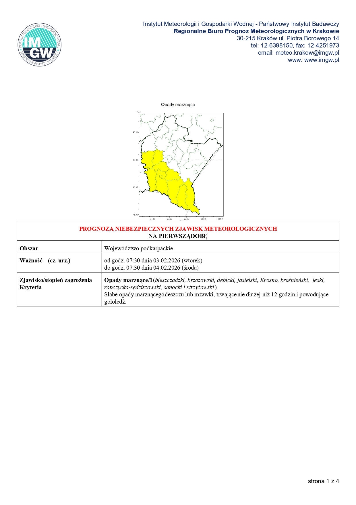 PROGNOZA NIEBEZPIECZNYCH ZJAWISK METEOROLOGICZNYCH Z DNIA 03.02.2026