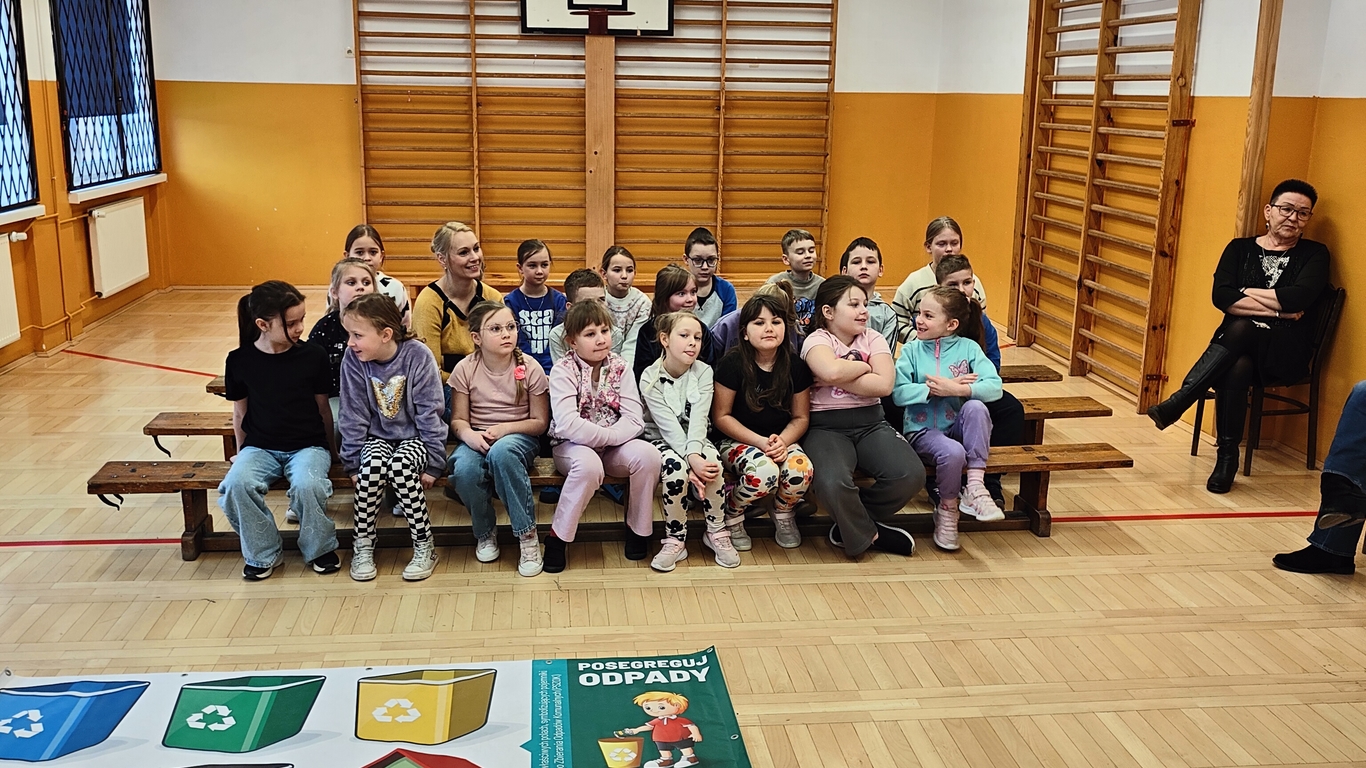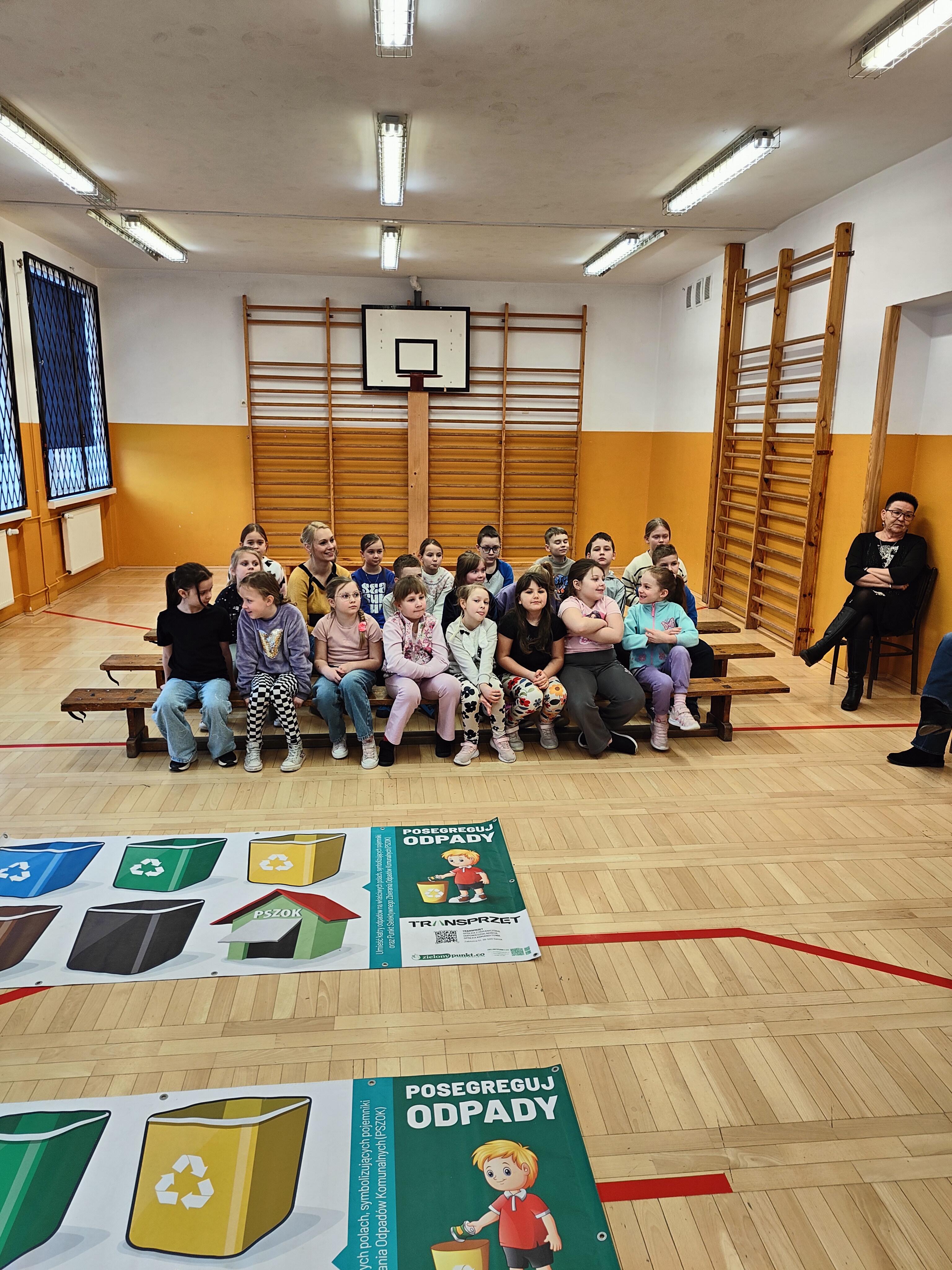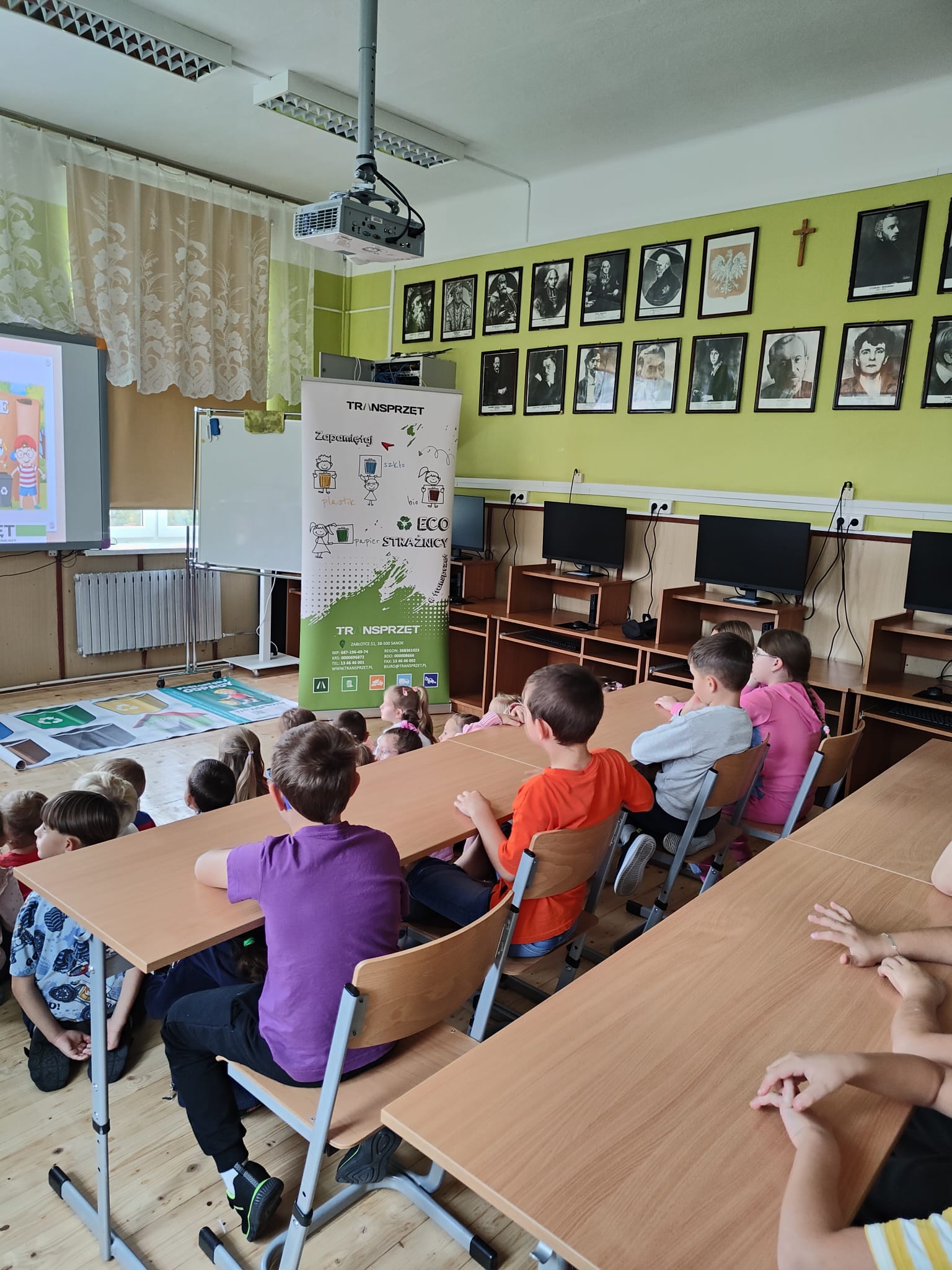 Dzieci dowiedziały się, dlaczego i czy warto segregować odpady? Zajęcia zorganizowano przy pomocy prezentacji multimedialnej oraz filmu edukacyjnego „Transprzęcik”. Uczniowie mogli się również sprawdzić w sposób praktyczny dokonując prawidłowej segregacji.