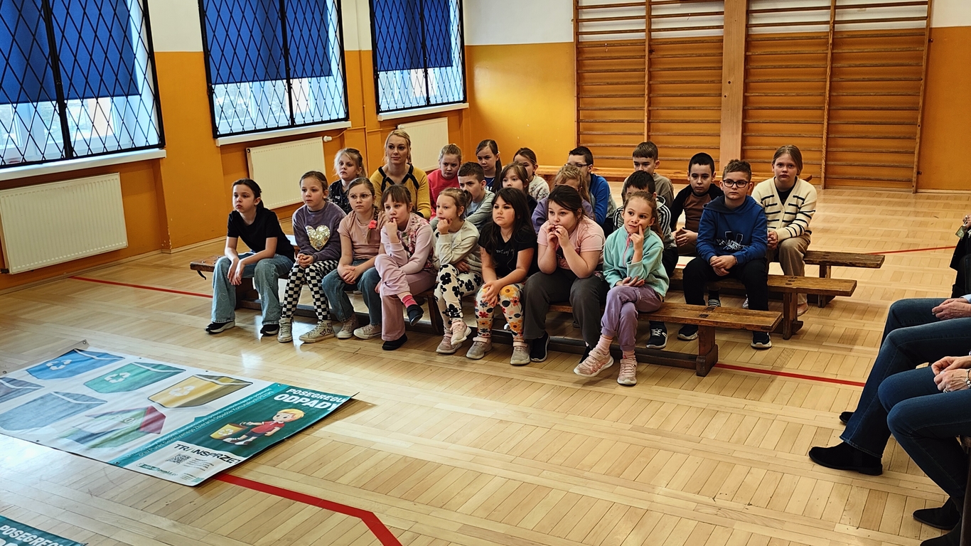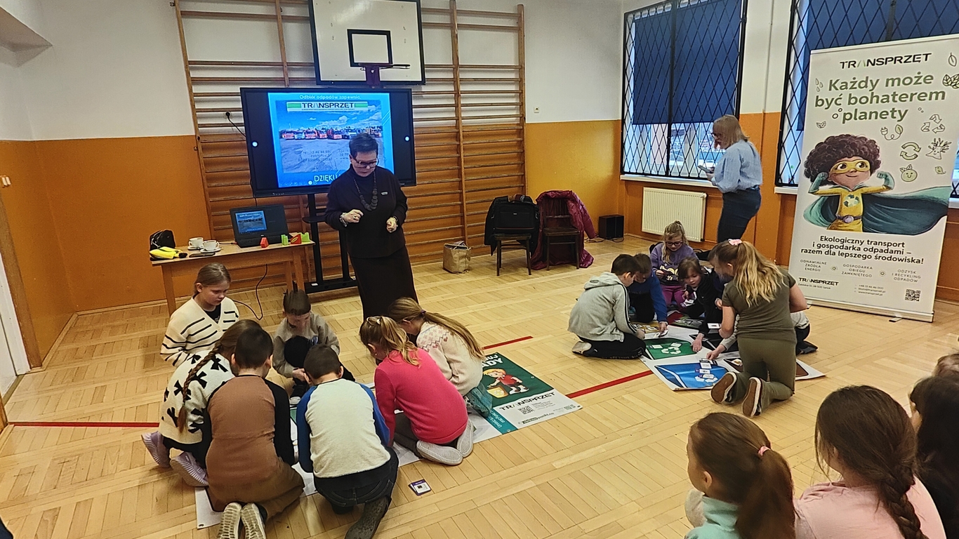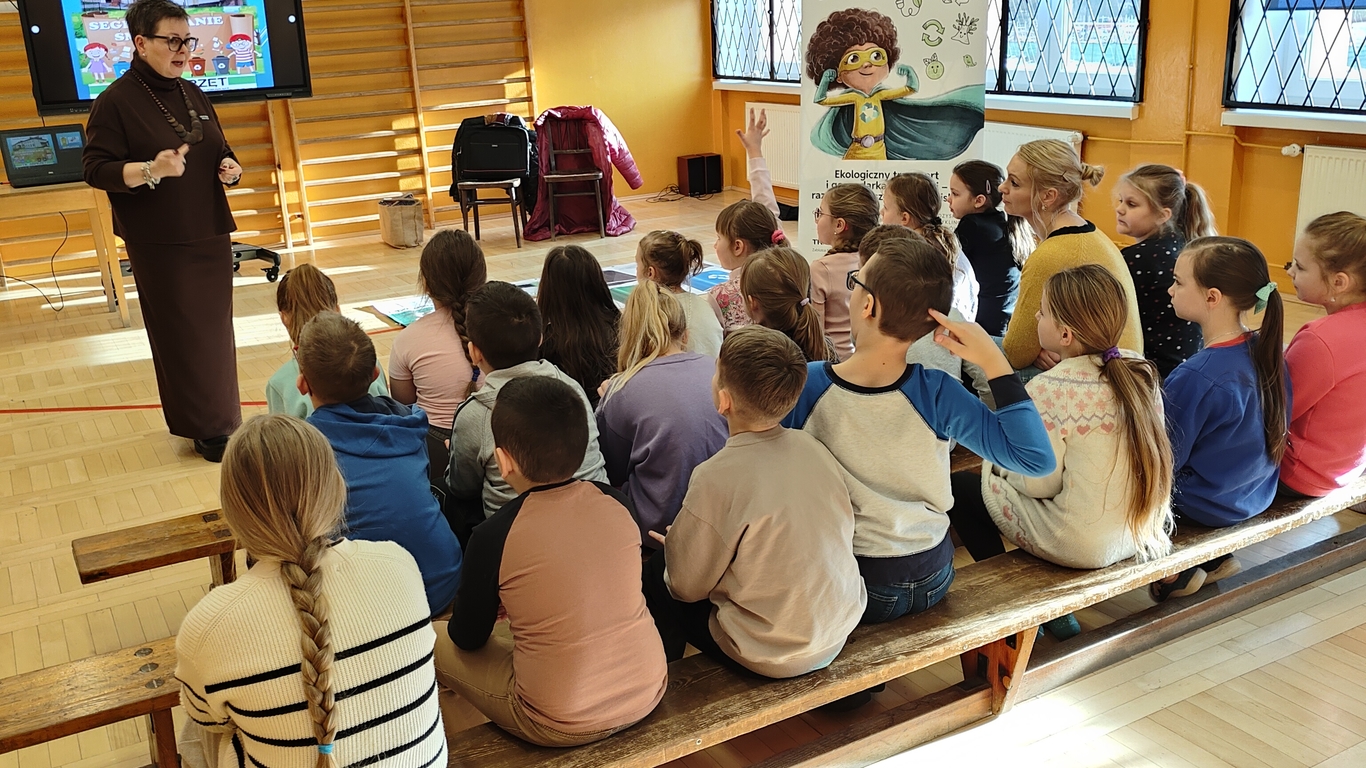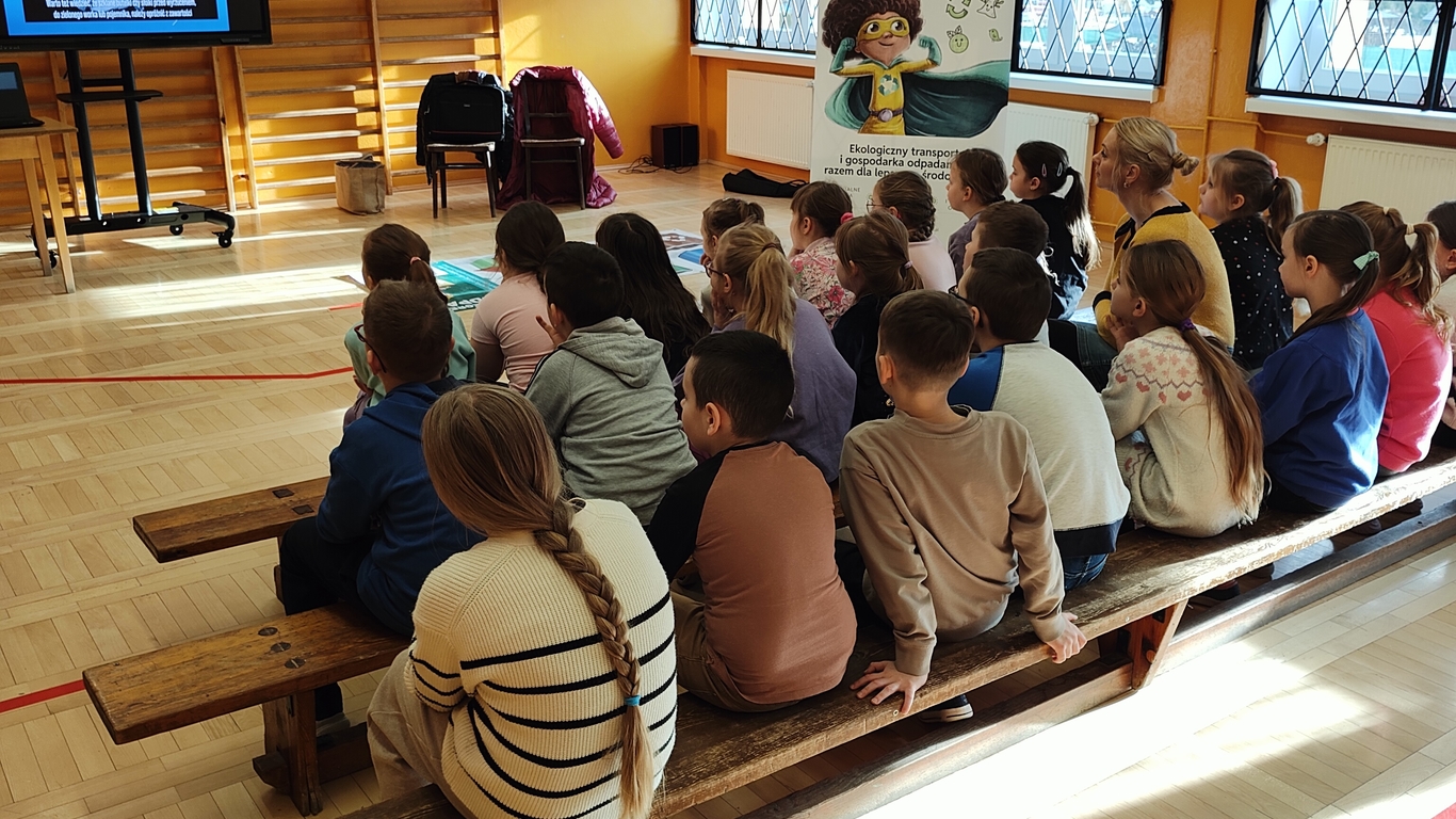 Dzieci dowiedziały się, dlaczego i czy warto segregować odpady? Zajęcia zorganizowano przy pomocy prezentacji multimedialnej oraz filmu edukacyjnego „Transprzęcik”. Uczniowie mogli się również sprawdzić w sposób praktyczny dokonując prawidłowej segregacji.