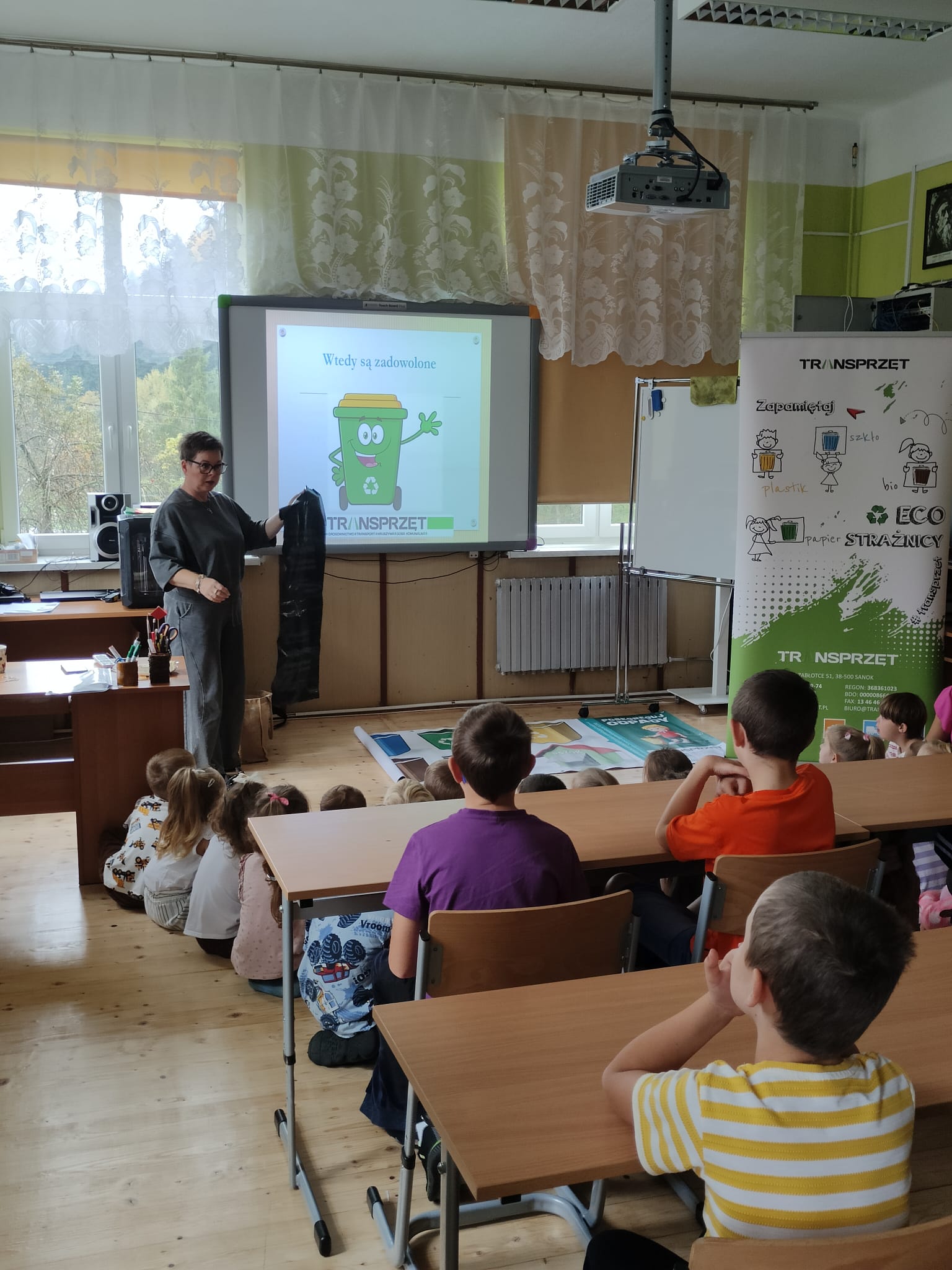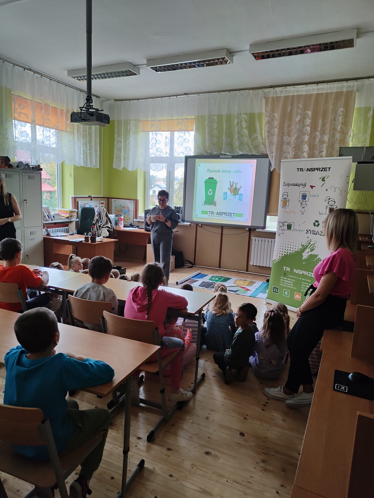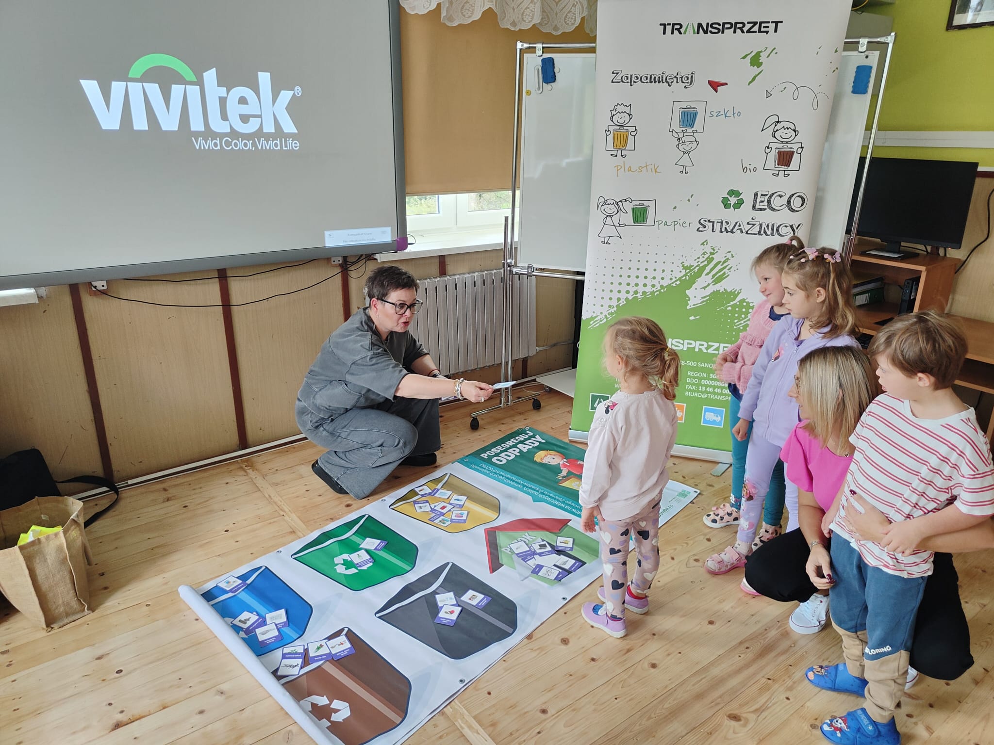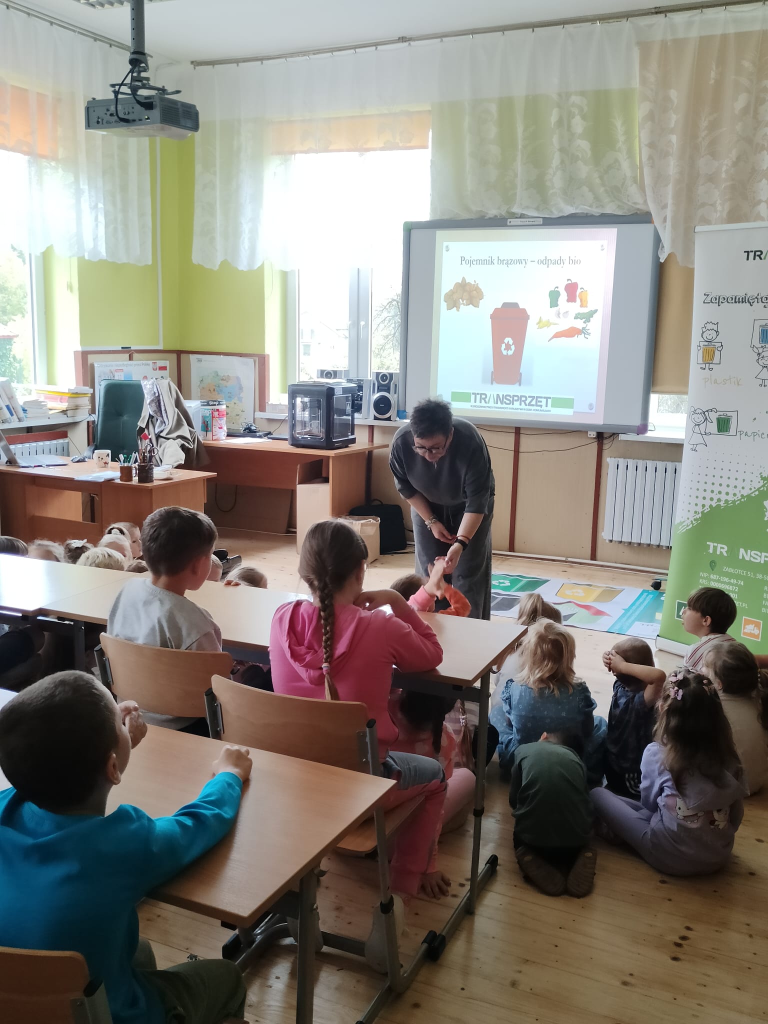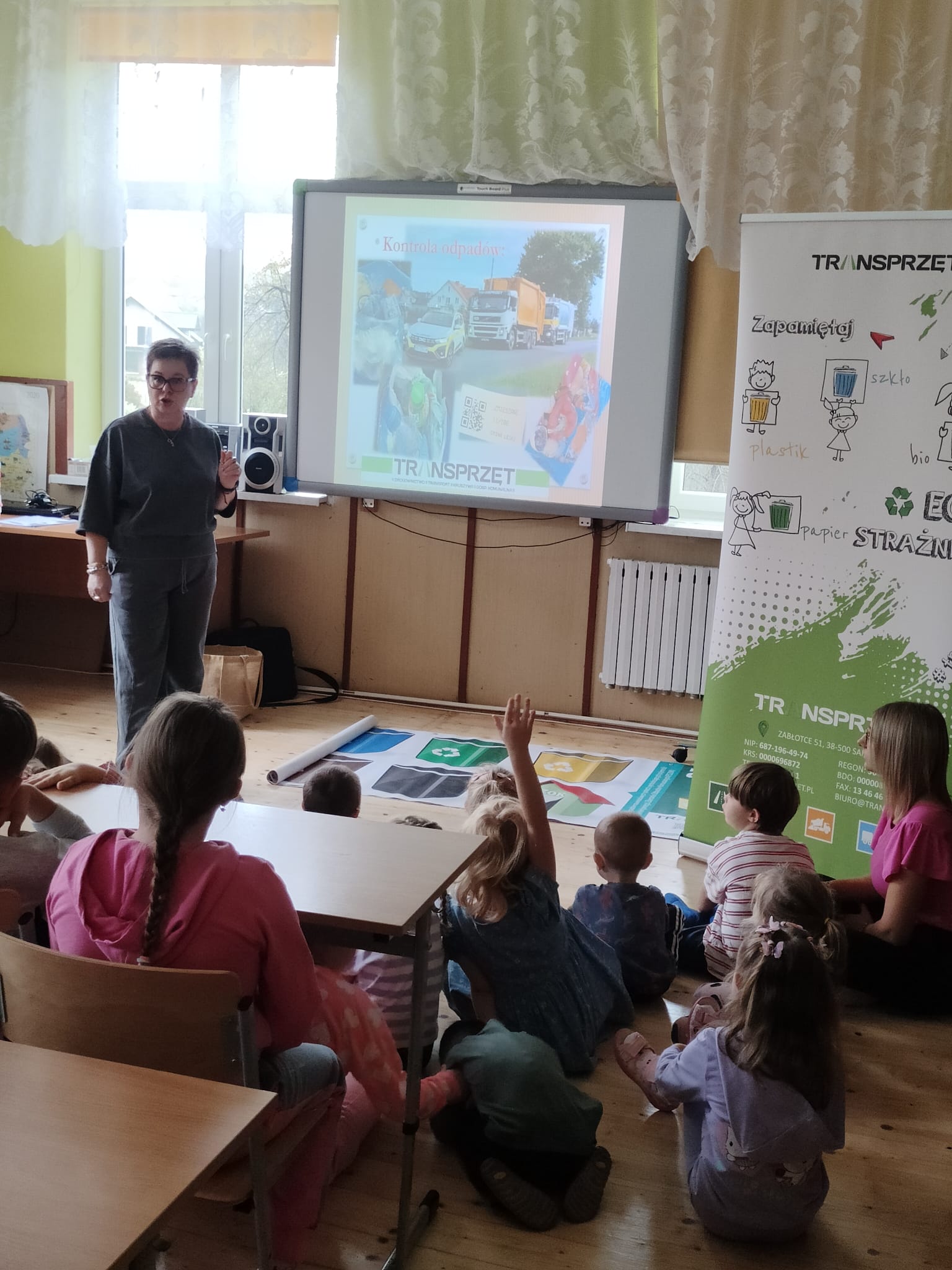 Dzieci z przedszkola oraz uczniowie szkoły podstawowej dowiedziały się, dlaczego i czy warto segregować odpady?. Zajęcia zorganizowano przy pomocy prezentacji multimedialnej oraz filmu edukacyjnego „Transprzęcik”. Uczniowie mogli się również sprawdzić w sposób praktyczny dokonując prawidłowej segregacji.