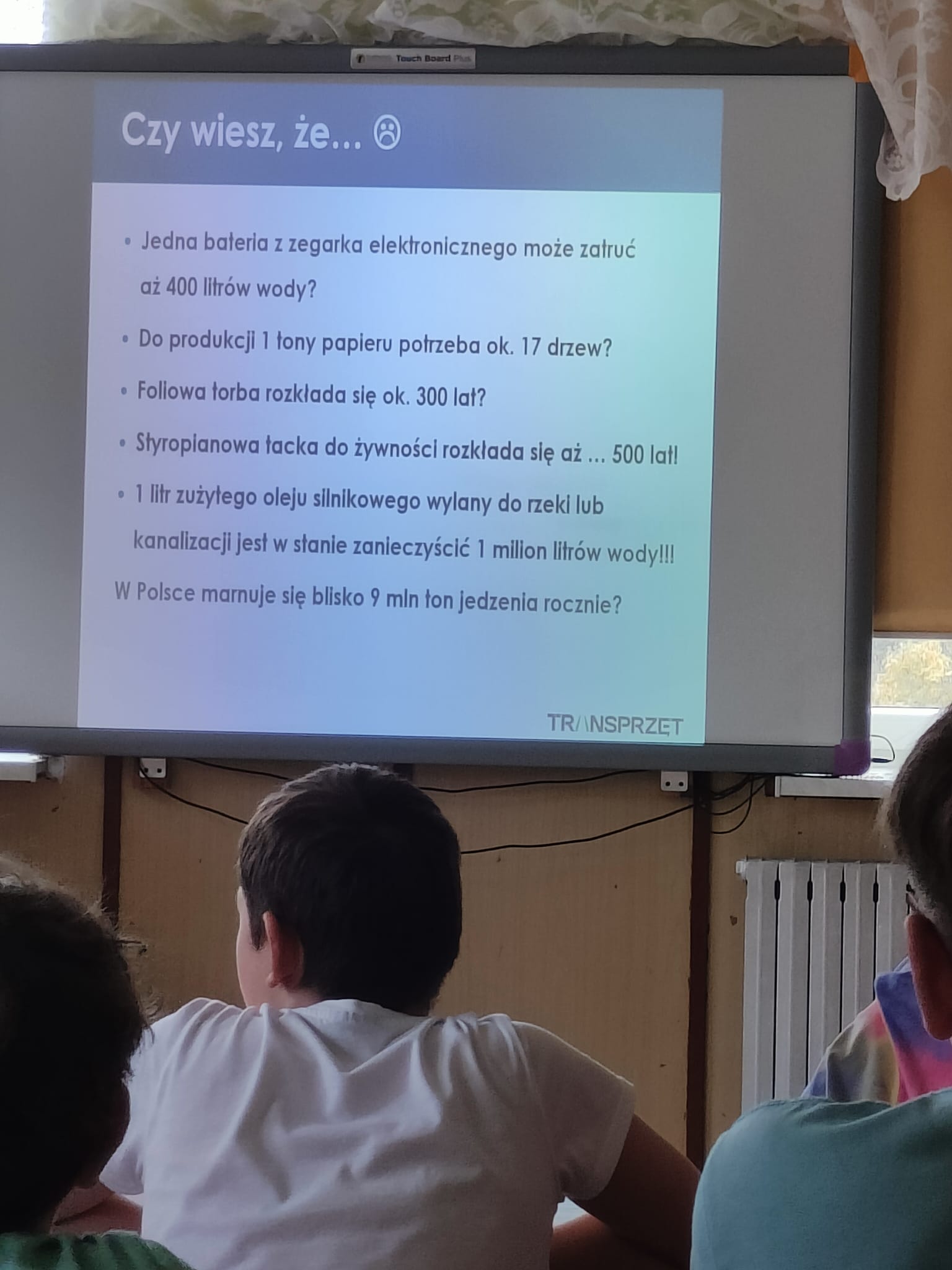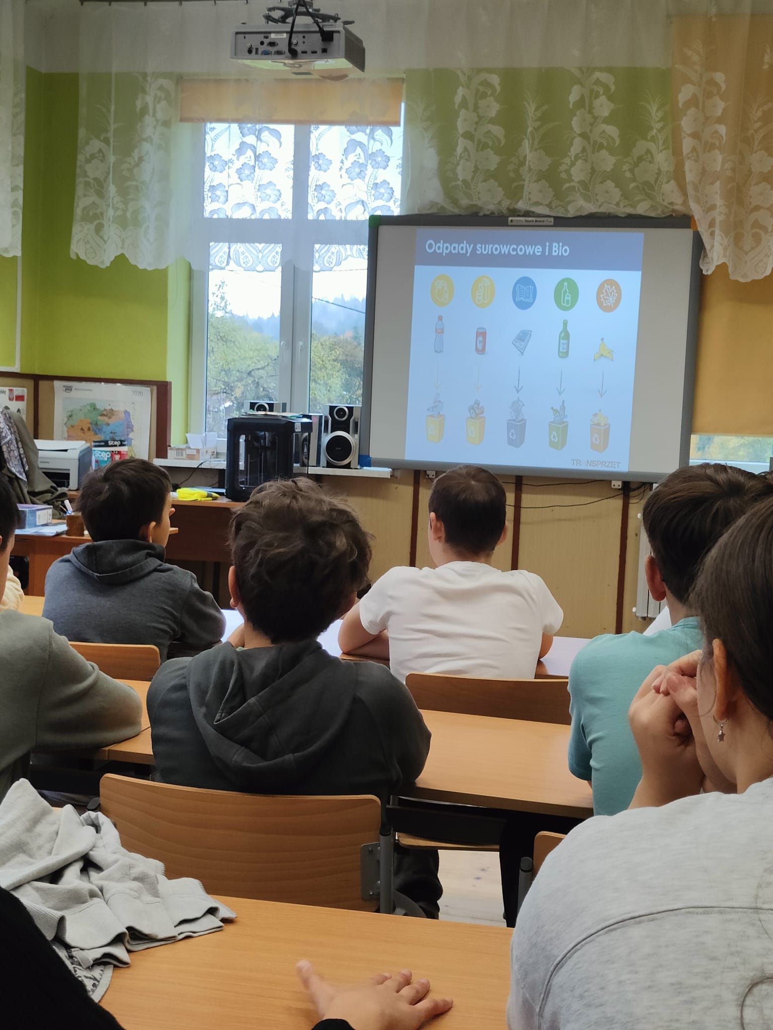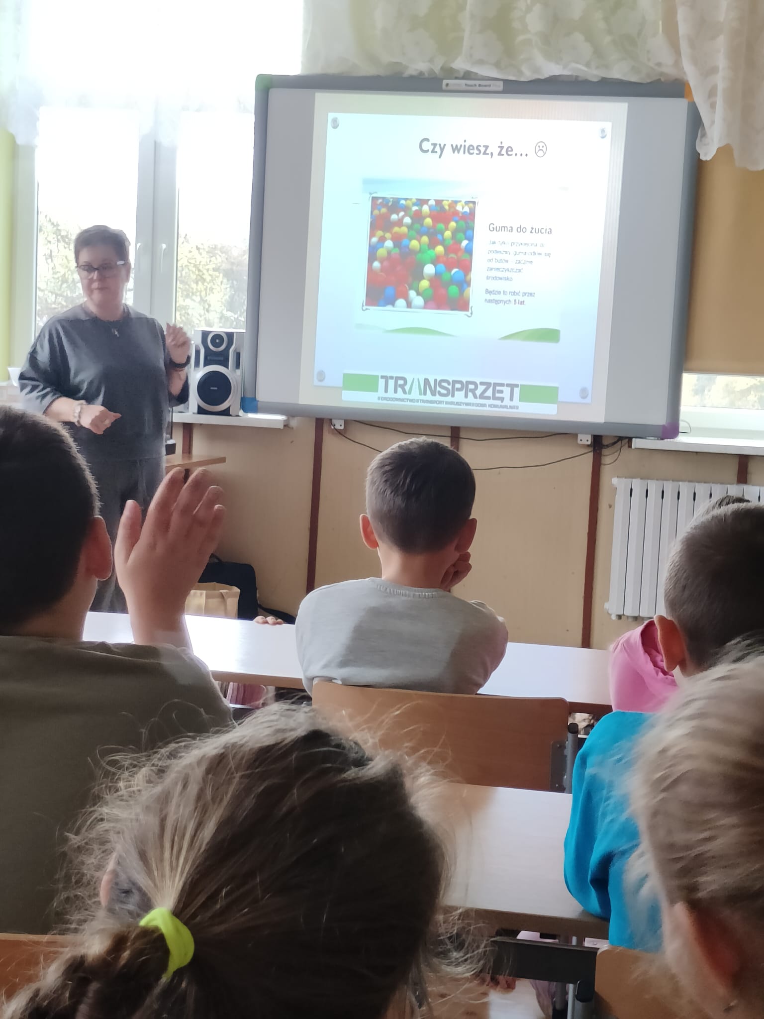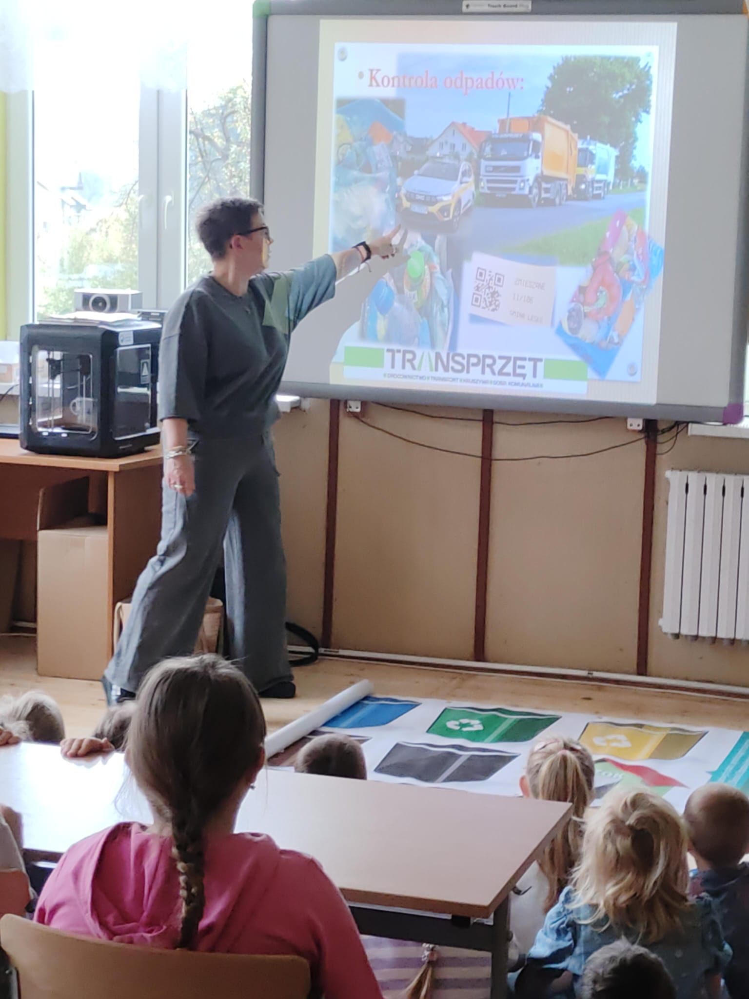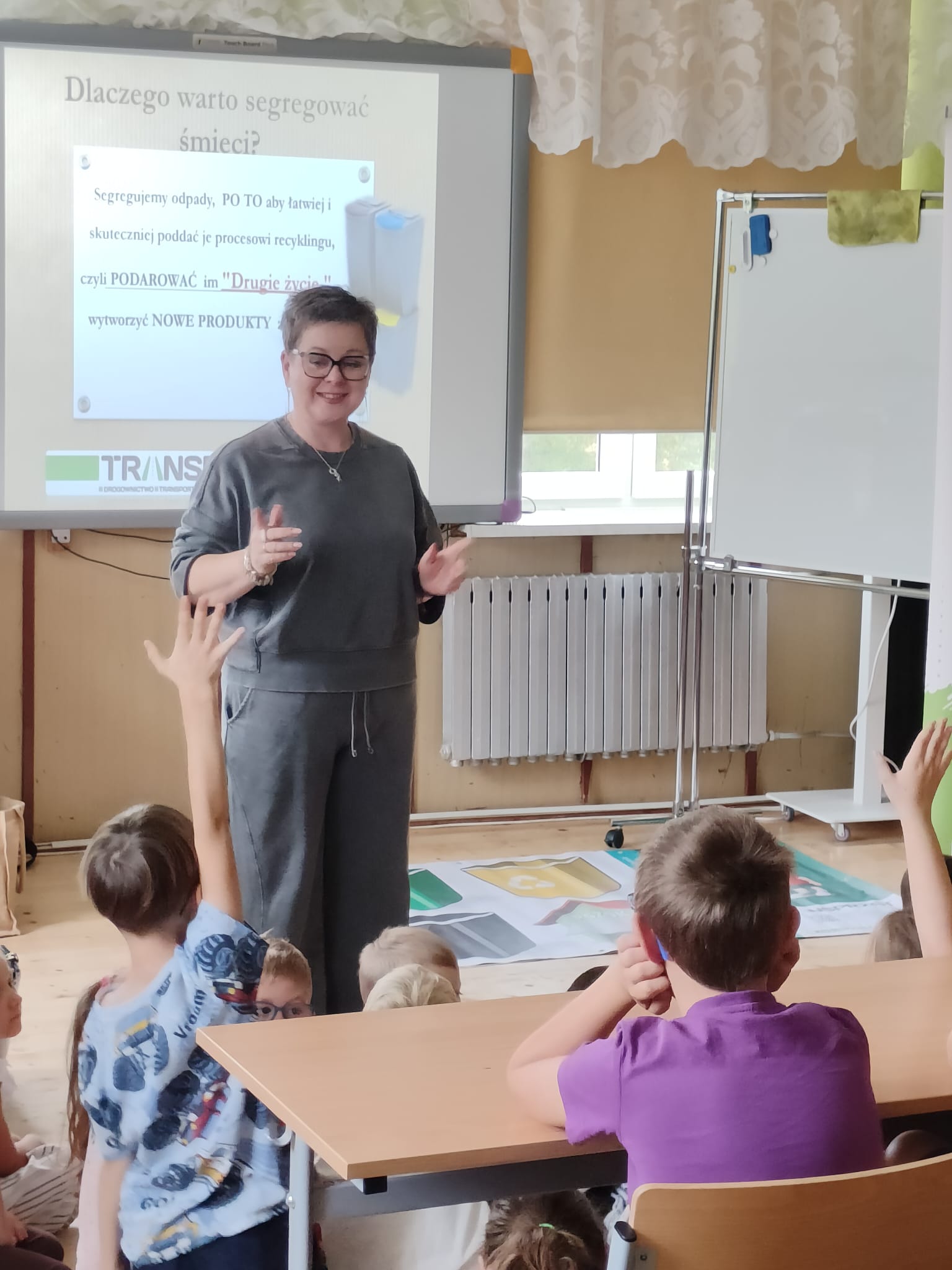 Dzieci z przedszkola oraz uczniowie szkoły podstawowej dowiedziały się, dlaczego i czy warto segregować odpady?. Zajęcia zorganizowano przy pomocy prezentacji multimedialnej oraz filmu edukacyjnego „Transprzęcik”. Uczniowie mogli się również sprawdzić w sposób praktyczny dokonując prawidłowej segregacji.