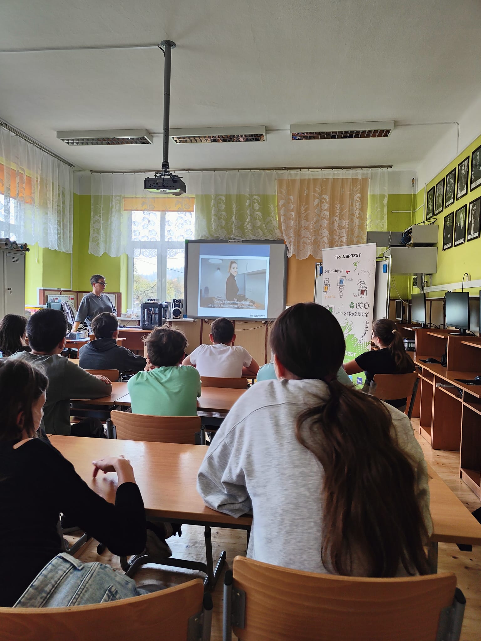 W marcu 2025 r. na terenie Gminy Lesko w Szkole Podstawowej w Bezmiechowej Dolnej została przeprowadzona prelekcja dotycząca prawidłowego segregowania odpadów. Lekcję edukacyjną przeprowadziła Pani Agata z firmy TRANSPRZĘT przy współpracy z Panią Moniką - pracownikiem Urzędu Miasta i Gminy w Lesku.