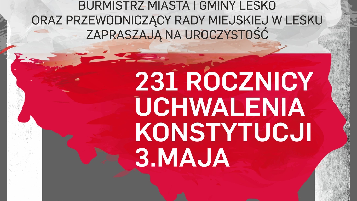 Serdecznie zapraszamy na uroczyste obchody 231 Rocznicy Uchwalenia Konstytucji 3 Maja. Szczegóły na plakacie